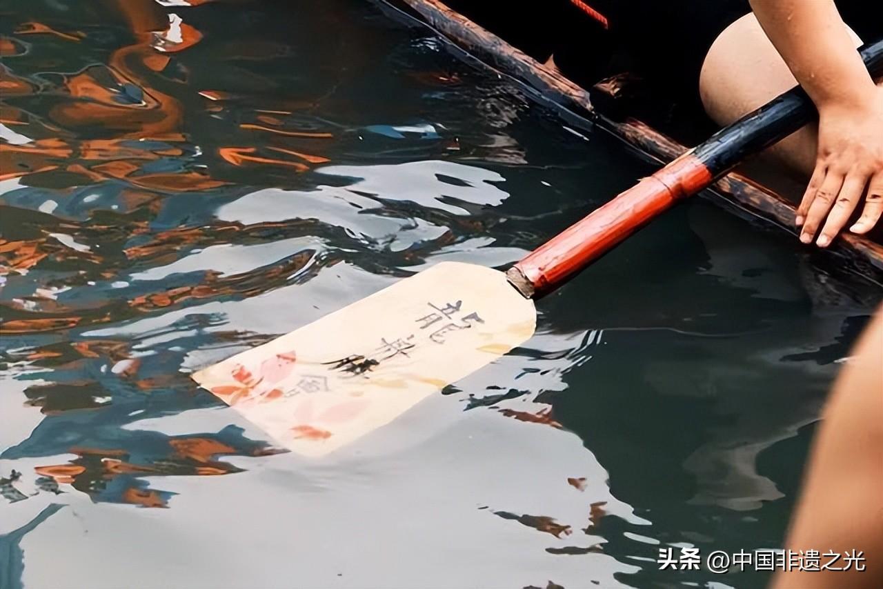 划着刻成龍形的獨木舟