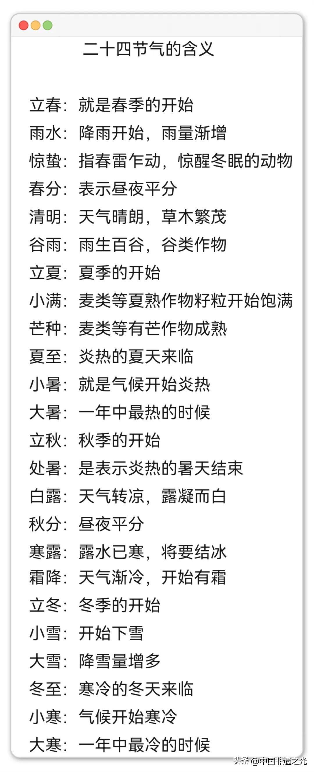 9. 教育寶庫:長期積累的節氣物候記錄,爲研究古今氣候變化提供了珍貴史料。它也是進行自然科學(天文、地理、生物)教育、傳統文化傳承和生活智慧學習的絕佳素材。