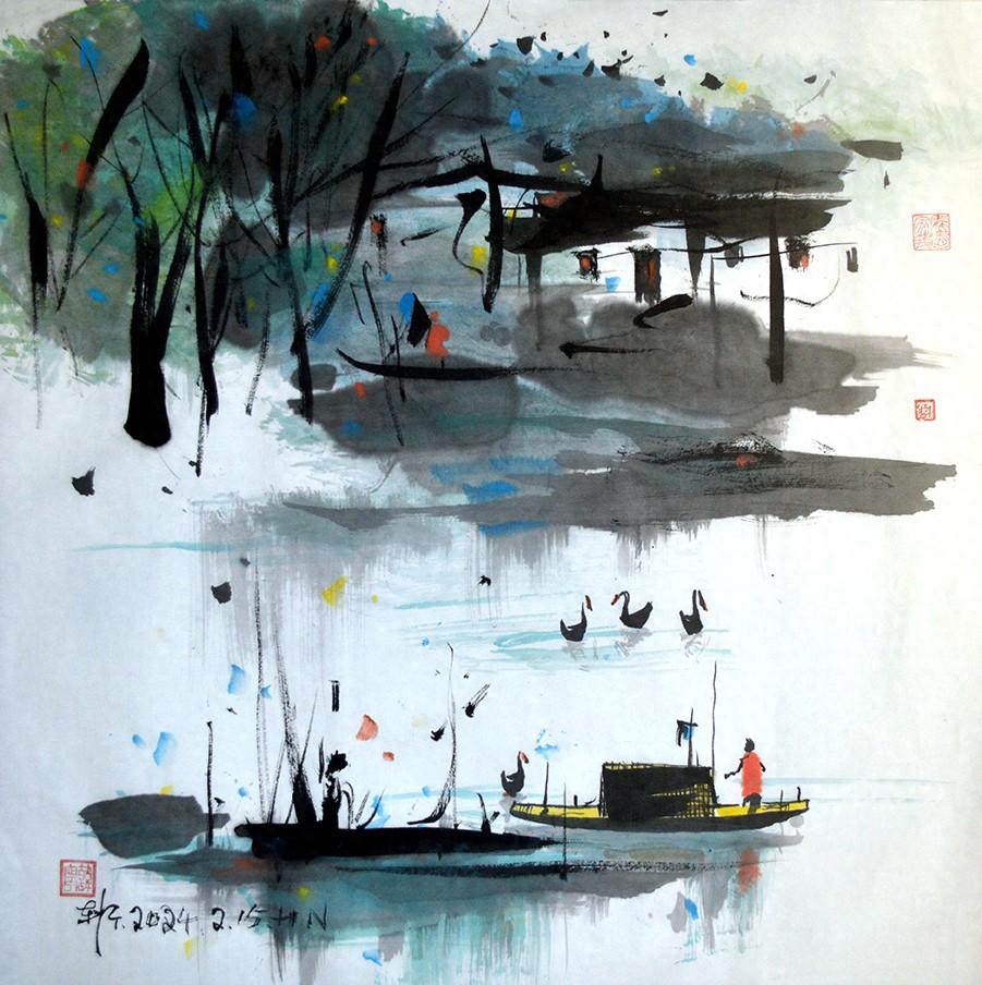 山不是真正的山,水也不是真正的水,景也不是真正的景,一切都是一種對於生活現象的感受有感而發出來的變奏曲,應用視覺語言重塑造感官感受的以及情緒化的表達再生現象。我認爲這是繪畫藝術表現的要素所在和藝術性的體現,否則一幅作品達不到好看的程度,沒有形式美感要素只有一味地強調造型能力技術體現,作品怎麼會有藝術性而值得人們去欣賞呢?