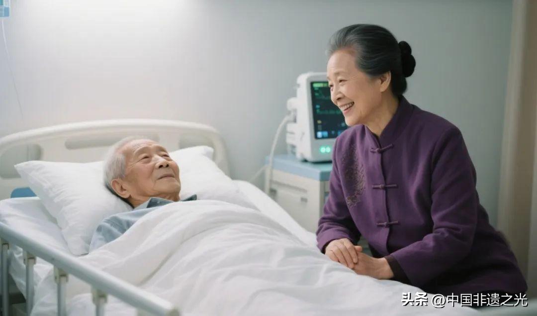 在病牀前,伴侶的陪伴是幾十年深情的自然流露。