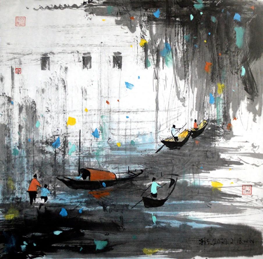 在水中漂浮滌盪不定的船兒,像個不停地晃着身子喃喃自語着的兒童,在倒影綽綽裏灑落了隻言片語,像似夢裏囈語般讓人迷惑卻又似乎明白什麼而愜意。生活的情調與情趣就是這樣在你有了一份輕鬆愉悅的心情時就悄無聲息地來到你的心田滋潤滿滿。一切都在確定與不確定之間讓你心曠神怡,就像人生沒有一個是確定不變的答案一樣。在不斷地認識瞭解與掌握之中又消失殆盡了,就像手裏抓了一把砂礫一樣,想抓緊它卻消失的更快。人生的閱歷就像坐在高鐵上看着窗外的一幕幕精彩而又與自己不相干的景色,審視着自己與之間的存在關係,是否緊密相連是否茫然無助,一切都沒有融入感,只能是過眼雲煙對待,就像看了一場電影而結束人生一樣。
