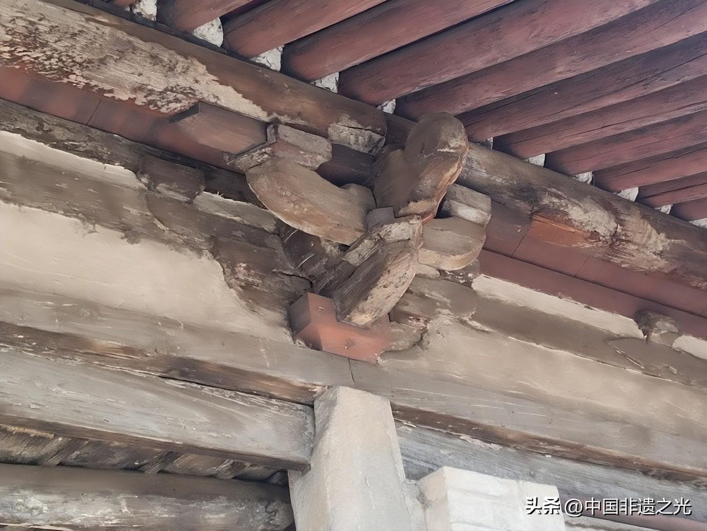 若說建築是凝固的音樂,姬氏民居的斗栱與樑架便是最激昂的樂章。前檐柱頭四鋪作單抄計心造斗栱,耍頭作麻葉形,泥道慢栱隱刻於牆內,無補間鋪作——這種形制在元代民居中堪稱孤例,卻是宋金建築秩序的餘韻。抬頭可見“徹上露明造”的樑架,四椽栿前壓乳栿通檐用三柱,蜀柱如衛士般承託平梁,丁華抹頦栱與叉手協力捧戧脊槫,每一處榫卯都暗含力學玄機。
