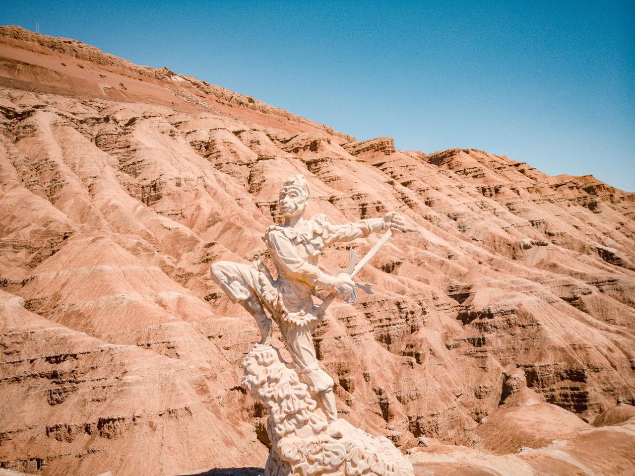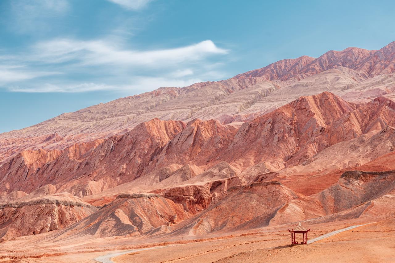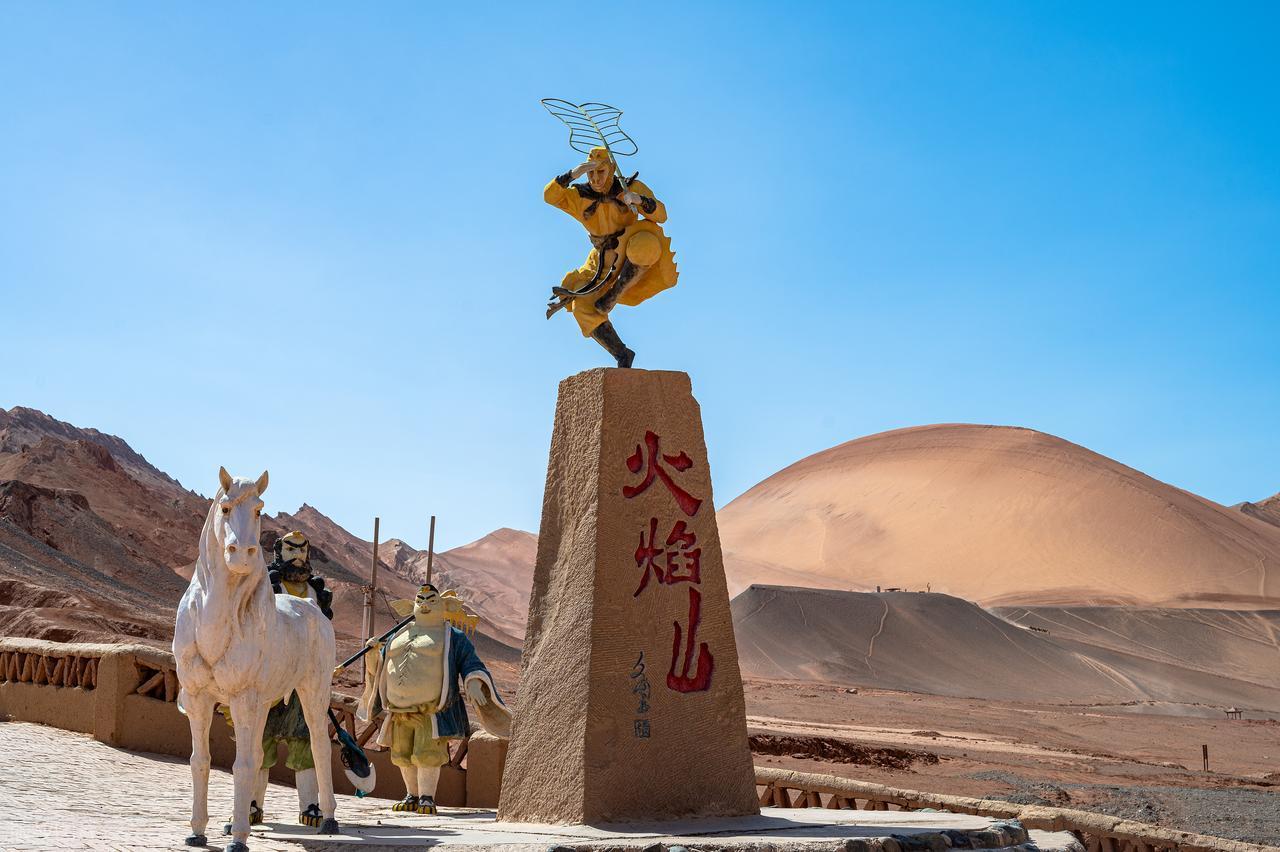 這山色如火的險峻之地,曾是絲綢古道難以迴避的險關。古人艱難跋涉於這沙磧熱海,駝鈴聲斷斷續續地穿過熱霾,不知幾多商賈旅人於這蒸騰地獄裏耗盡了最後一口水,最終倒斃在灼沙之上。如今旅人卻多是帶着獵奇的熱情,遠道而來,一探火焰山的威名。他們或立於石碑前拍照留念,或快走幾步,便匆匆躲進車廂,以空調的清涼來對抗這千古的酷烈——今人匆匆一瞥,實難測知古人用生命丈量過的荒涼與艱難。
