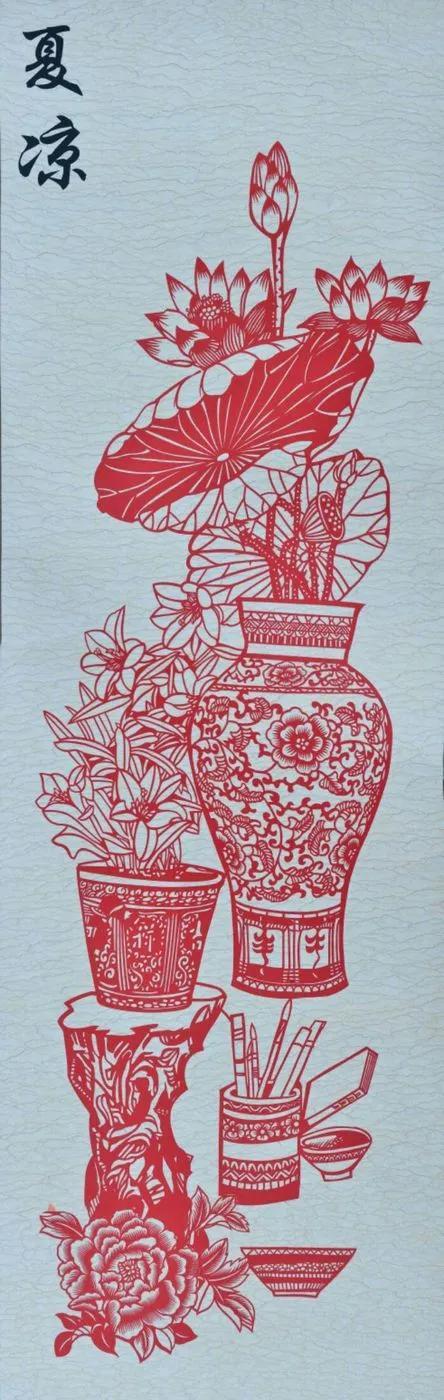 如《迎客松》《松鶴長春》等,都被翻新爲剪紙山水畫的範疇中,使古老的吉祥題材在剪紙作品中得到了新生。《晴巒蕭寺圖》《溪亭客話圖》也是由南宋畫家李成、劉松年同名之作轉型而來。
