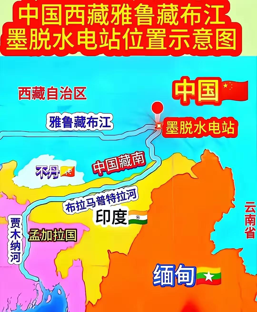 注:據央視的新聞聯播報道:雅魯藏布江下游水電工程於7月19日在林芝盛大開工。5座梯級水電站,1.2萬億的天文投資,足足是三峽工程的6倍。