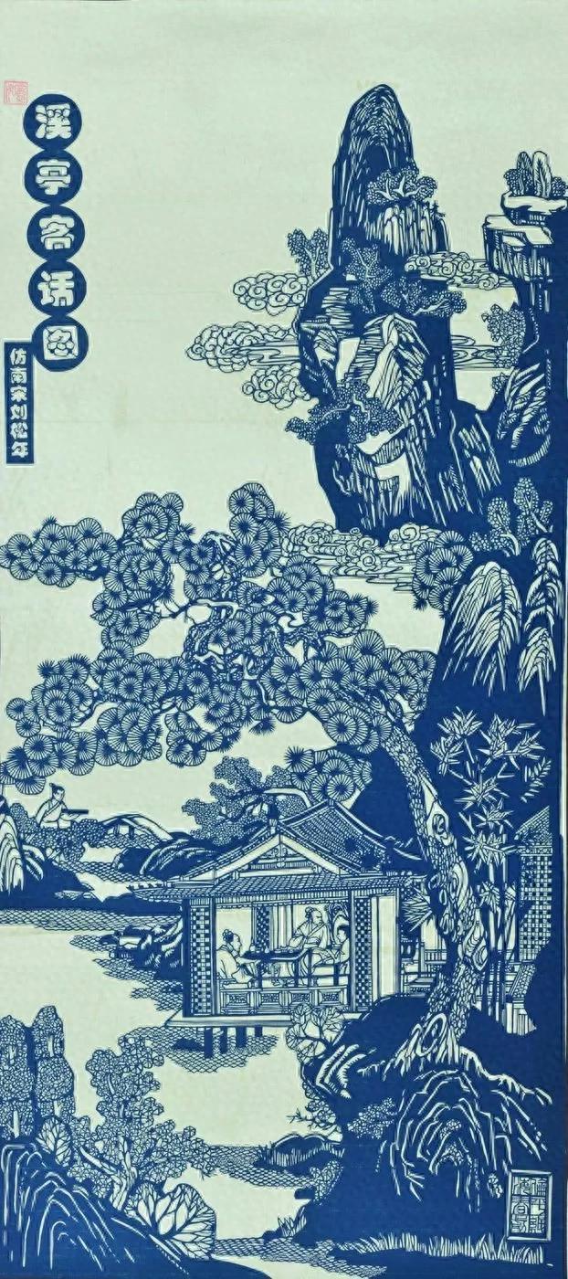 這門手藝裏藏着中國人的自然觀,其藝術韻味也與傳統哲學巧妙呼應。剪紙中的山水,講究 “疏可走馬,密不透風”,這與書法中的布白之道一脈相承。遠山用極簡的線條勾勒,留出大片空白,給人無限遐想;近景則精雕細琢,花草樹木的紋理清晰可辨,體現了 “知白守黑” 的智慧。