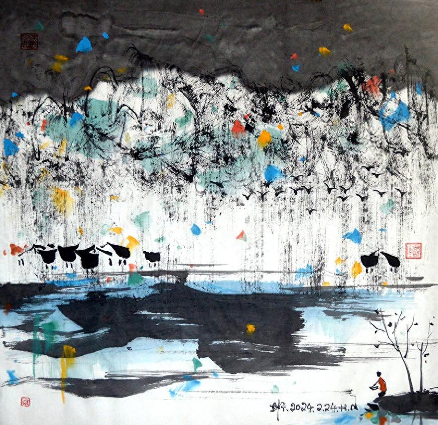 山高水長南來北往春夏秋冬,自然景觀氣候變化萬千氣象,在藝術表現中顯得那麼分明又與心情粘連的如此緊密,雖然是我們的感官在解讀繪畫藝術作品,實質上是我們的心情在感應着作品展示的情緒表達,從而使得觀賞者有了心靈的觸動感。而在表達心靈、情緒、情懷等諸多感性個性化的表現上我們就不能侷限於繪畫技法應用的條條框框之中,而是根據感覺的需要加以充分的表現,達到合情不合理的程度,從而超出一般認知度,達到感覺感受深刻的程度。