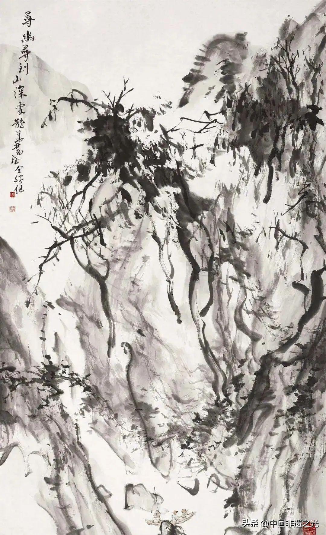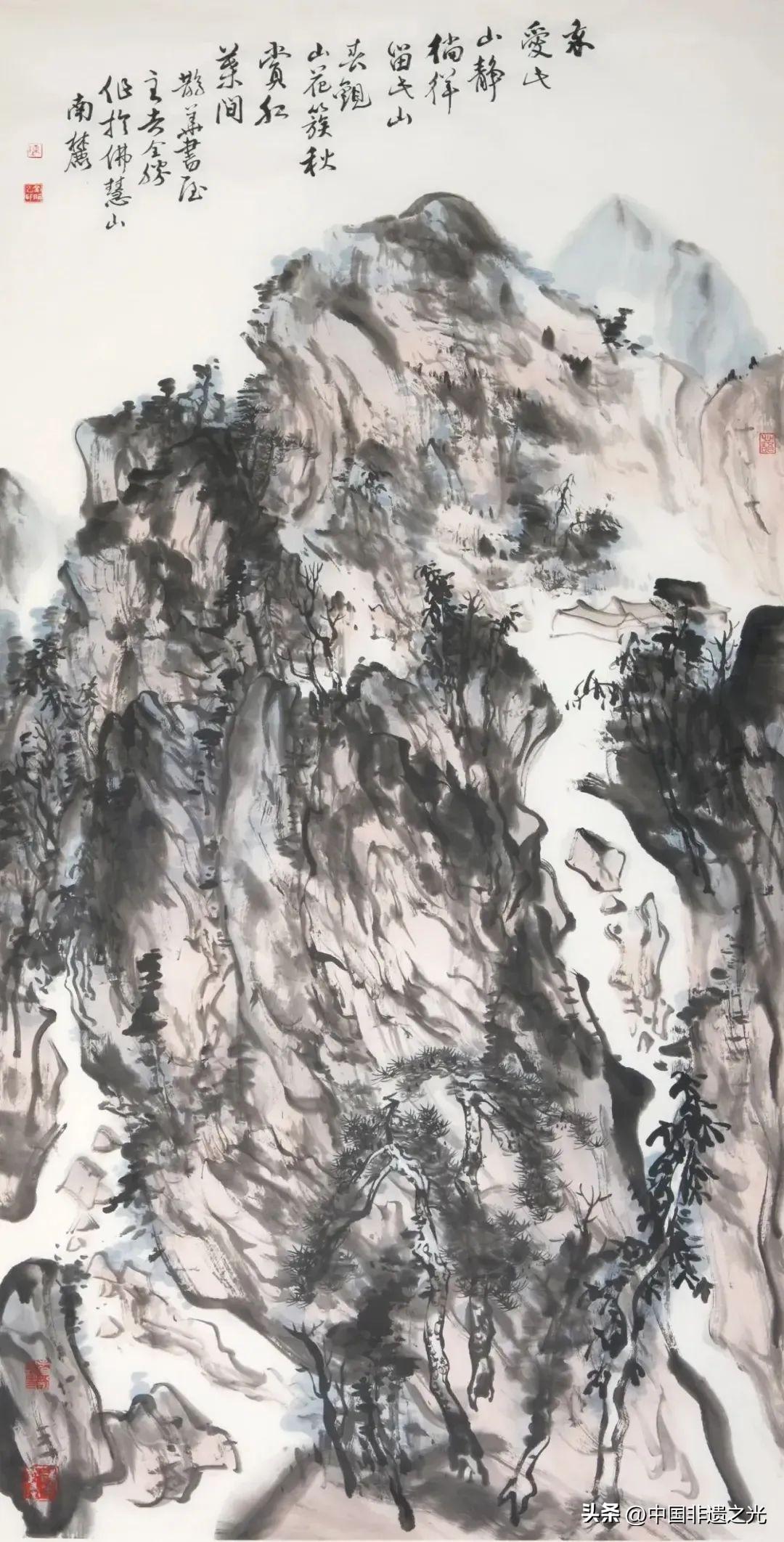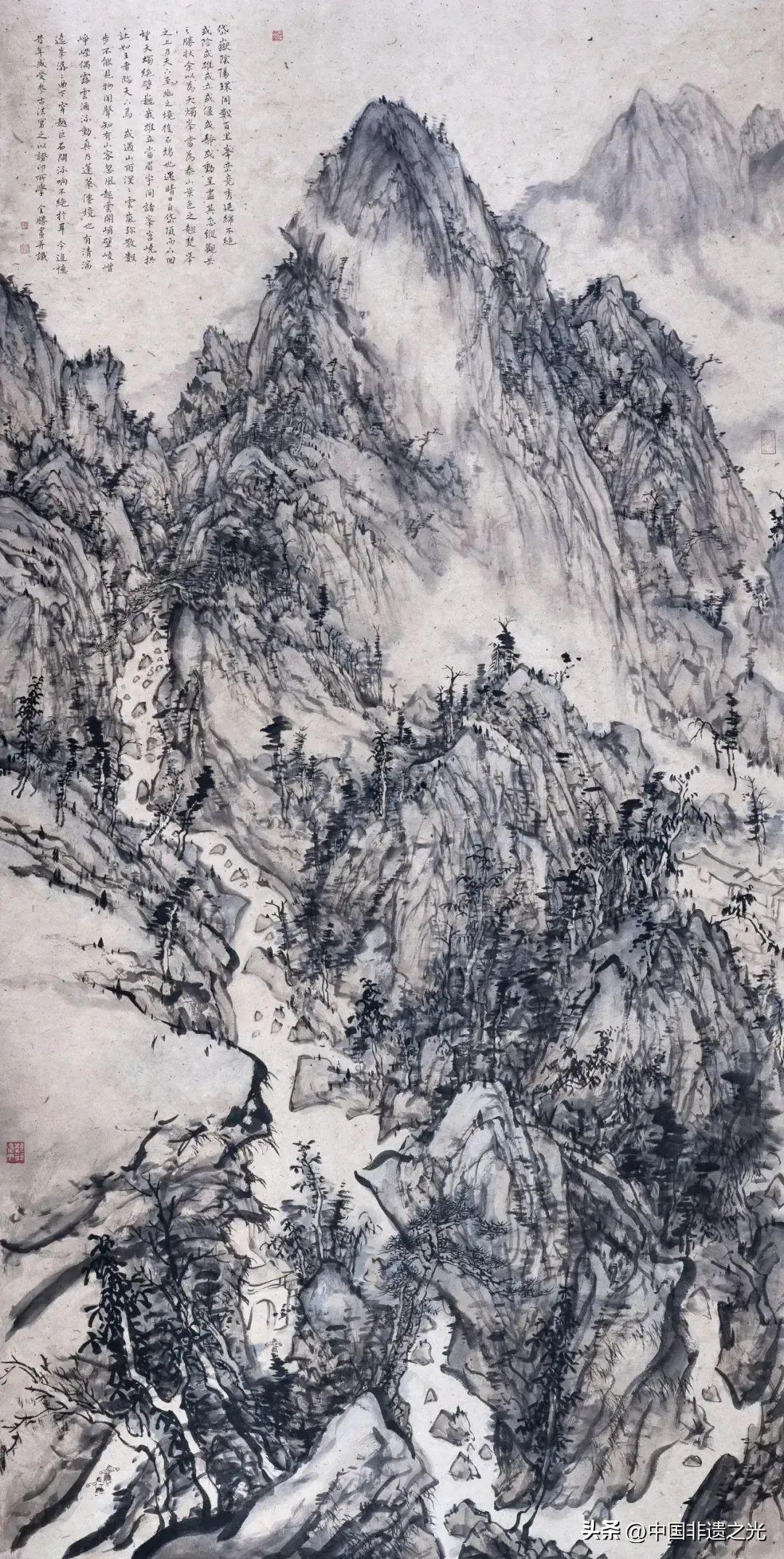 他筆下的山水既保留南方畫宗的溼潤靈秀,又蘊含着北方山嶽的蒼勁雄渾。