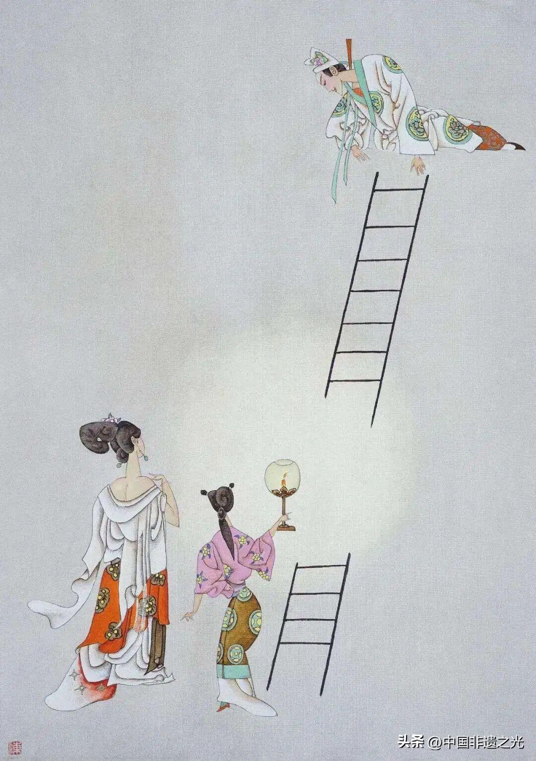 僅以豎梯和人物背影暗示情節,既保留了情節的關鍵元素,又給觀者留下無限想象空間。