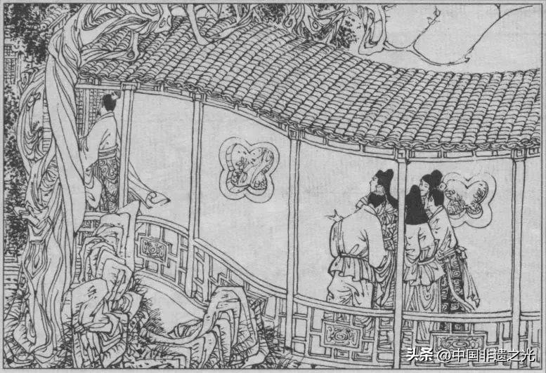 在“李瓶兒牆頭密約”一圖中,他大膽捨棄實體牆的描繪。