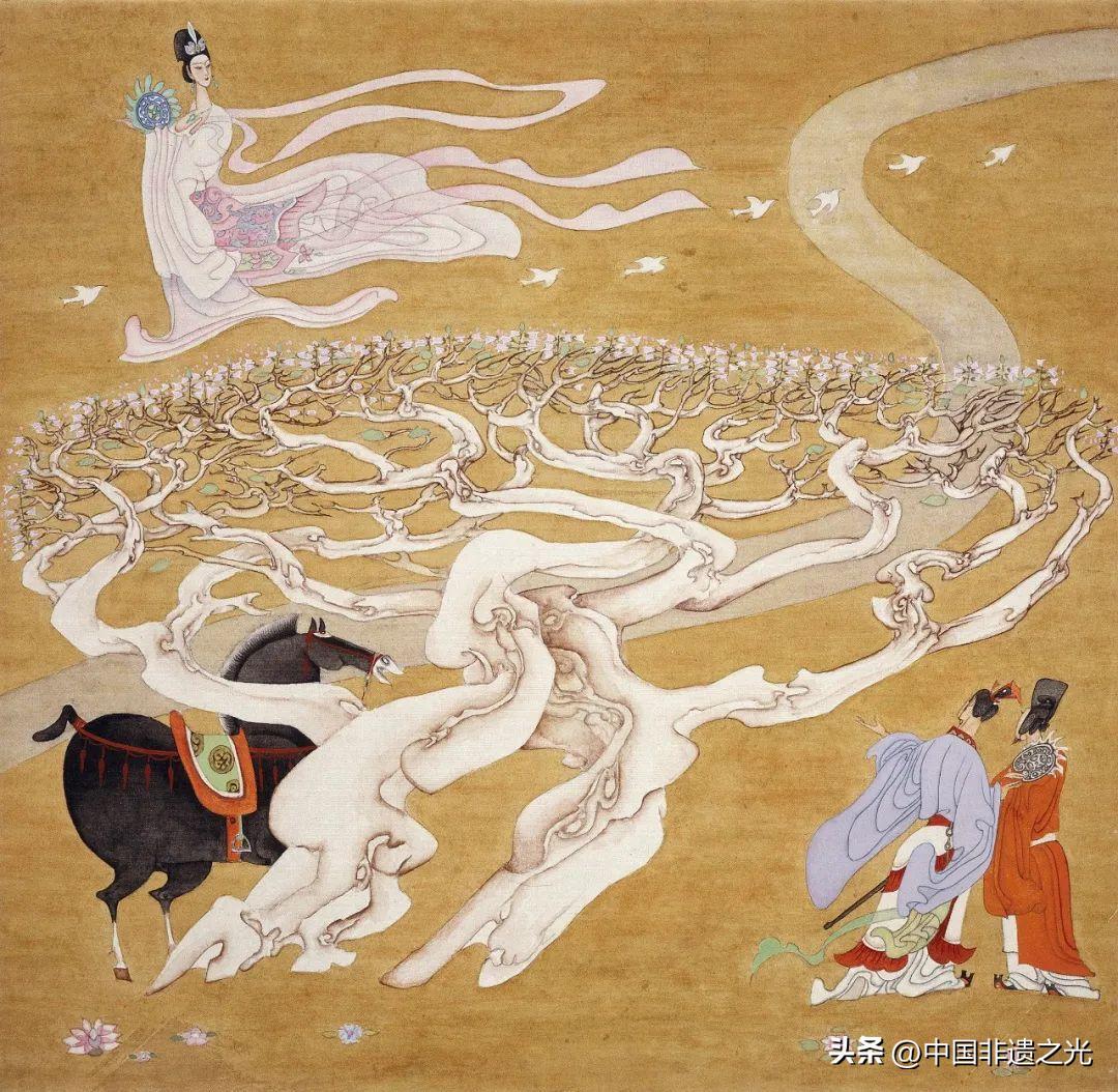 巧妙地將曹植筆下"翩若驚鴻,婉若游龍"的意境轉化爲可視的繪畫語言。