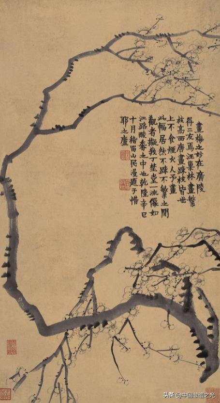 金農字壽門,號冬心,他長於花鳥、山水、人物,尤擅墨梅。他的畫造型奇古、拙樸,佈局考究,構思別出新意。