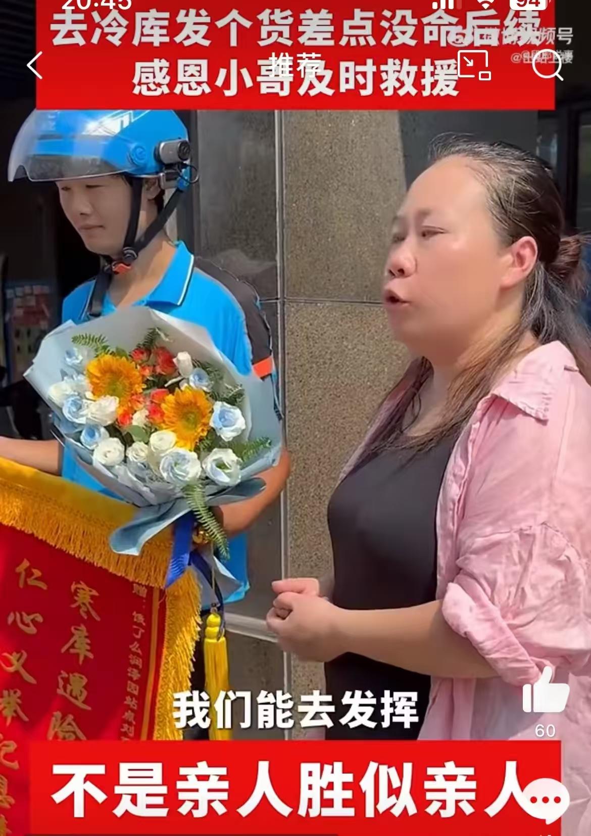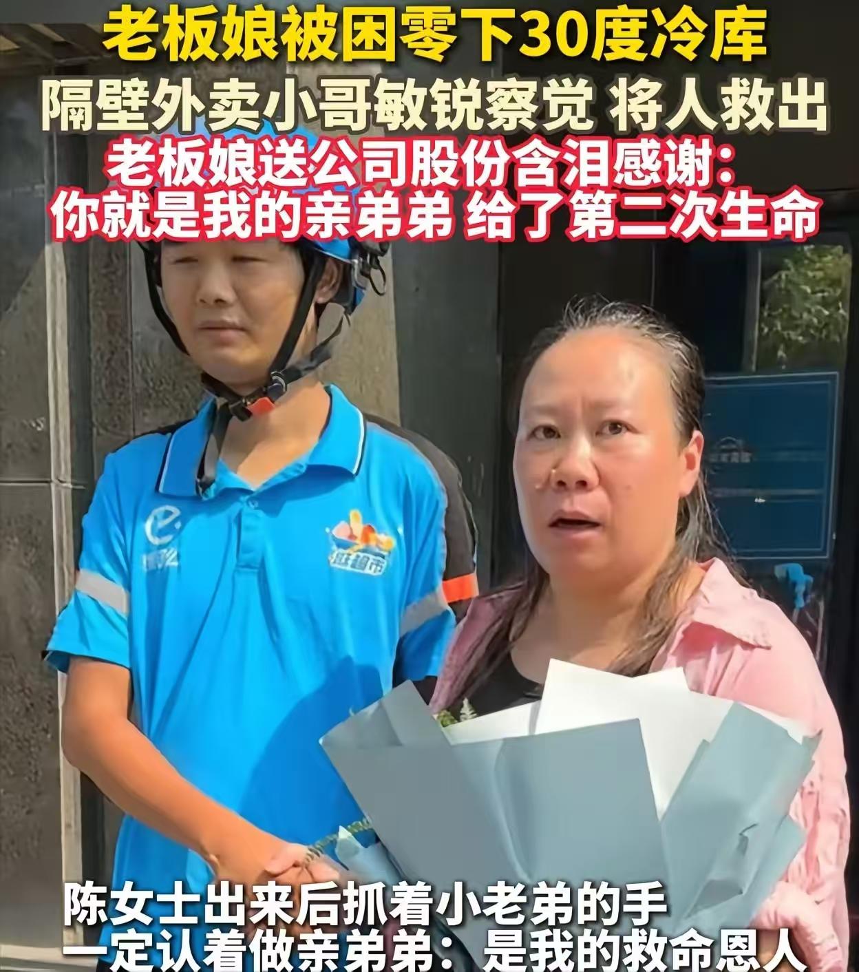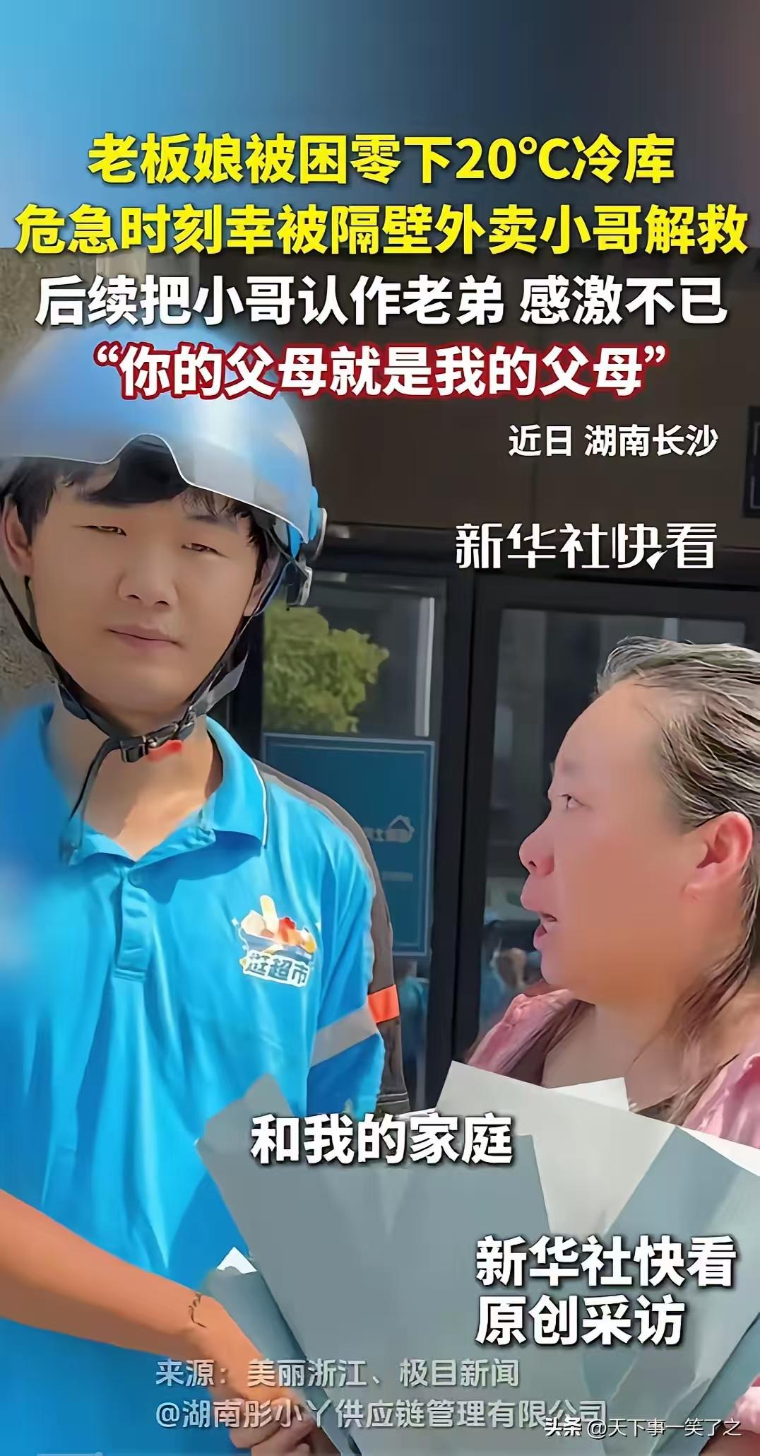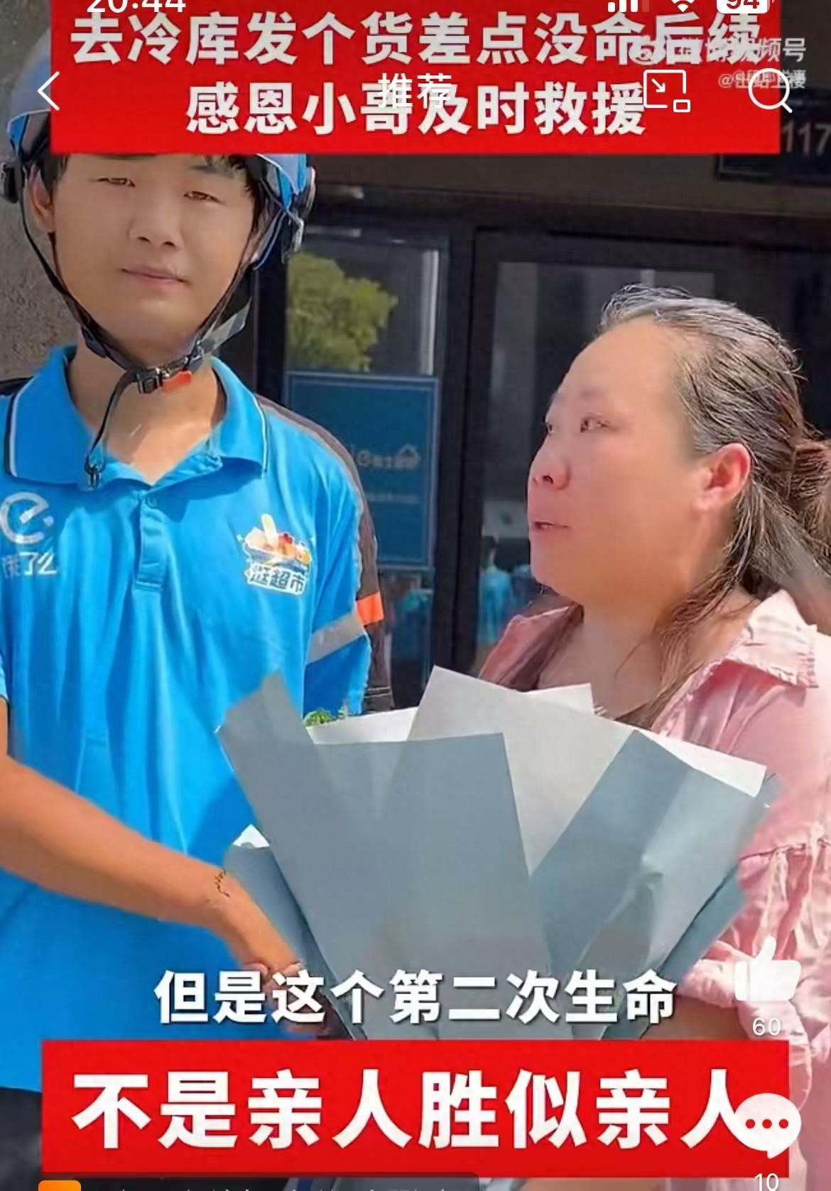 傳奇故事:湖南一女老闆被困冷庫 絕望中獲外賣小哥相救