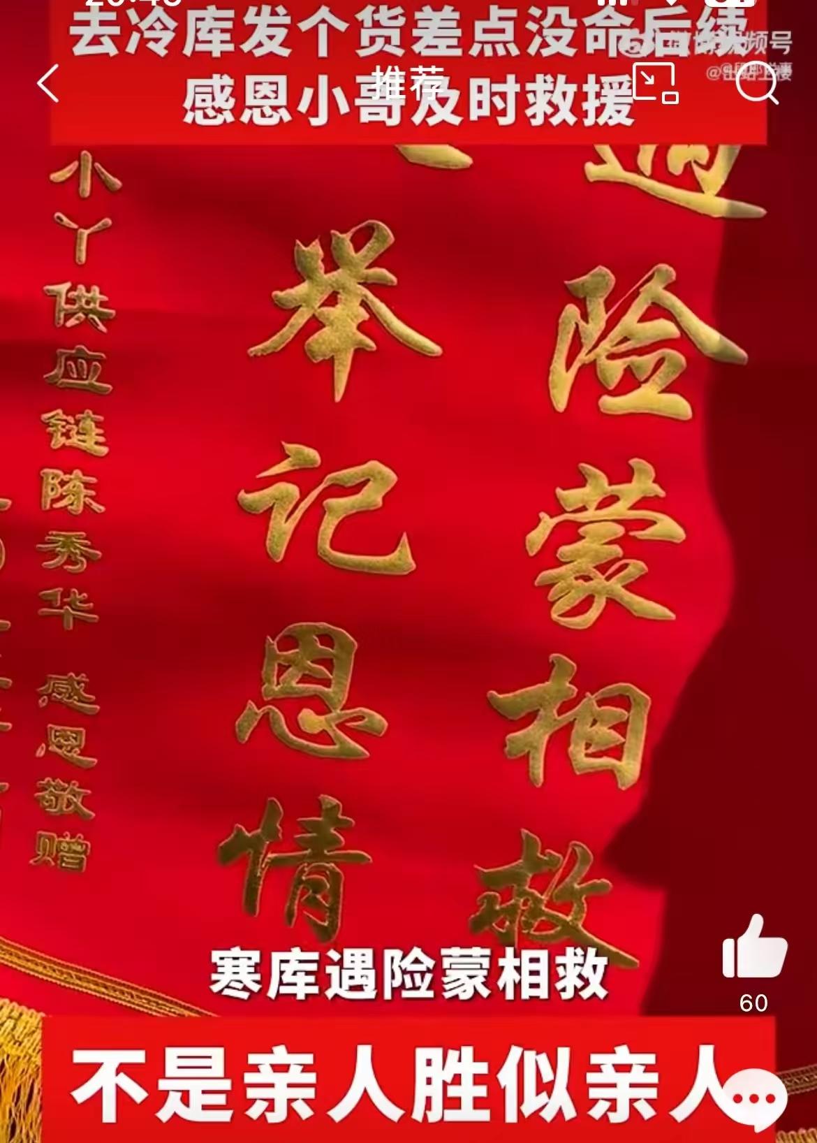 原來在2025年8月31日晚上6點多,湖南長沙嶽麓區鹹嘉新村,湖南彤小丫供應鏈管理有限公司創始人陳秀華獨自到冷庫取貨,發生了冷庫門從裏面不能打開的意外情況,被困在零下三十多度的冷庫裏,隨身也沒有攜帶手機,那簡直是叫天天不靈,喊地地不應。她只有抱着強烈求生的慾望,一直用冷凍水餃、拖鞋等重物敲擊着厚重的冷庫門來求救。