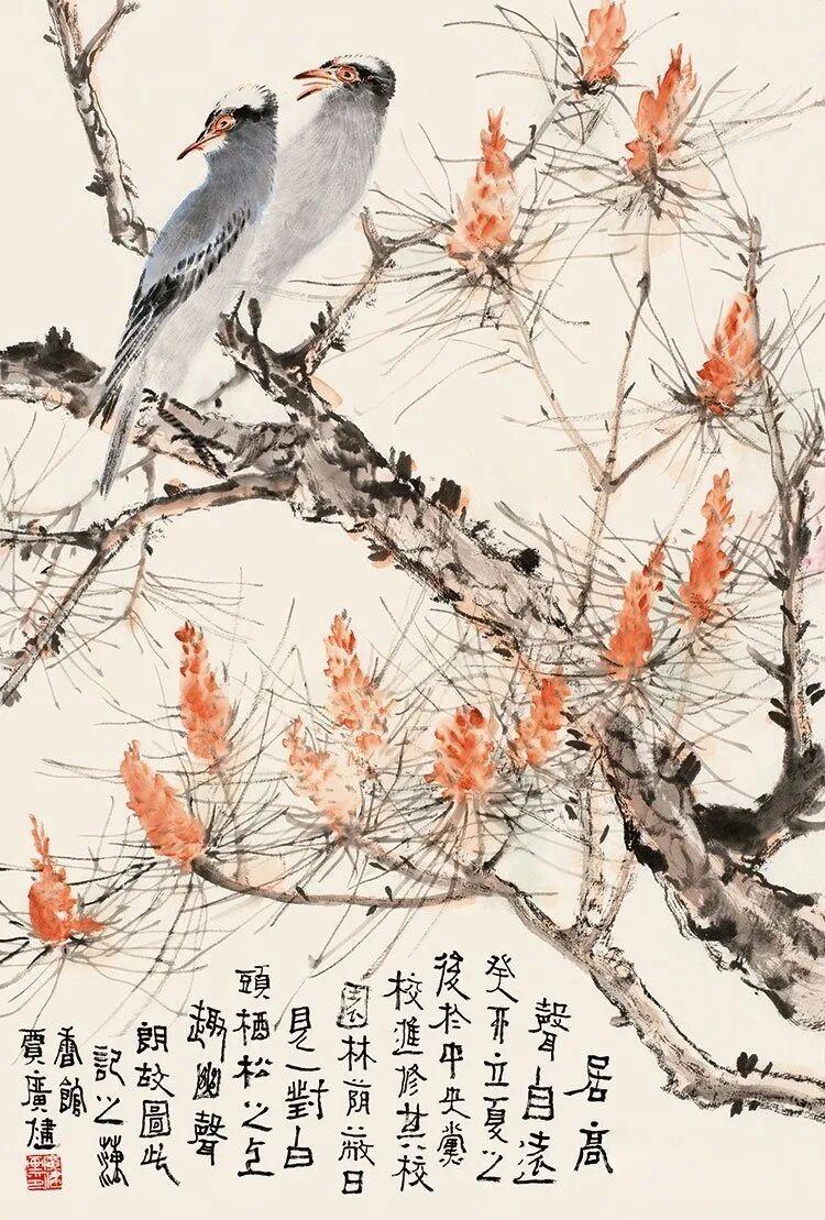 賈廣健先生的花鳥畫創作深研傳統筆墨精髓,汲取與消化了明清寫意花鳥畫、沒骨花鳥畫的傳統,特別是“青藤白陽”與吳門畫派畫法風格,保留文人筆墨抒情味道,將傳統花鳥畫章法與現代構成冶於一爐。無論是鄉間的藕節與秋瓜,還是故園的紅花和墨葉,都帶着獨有的靈動清氣和盎然生機。