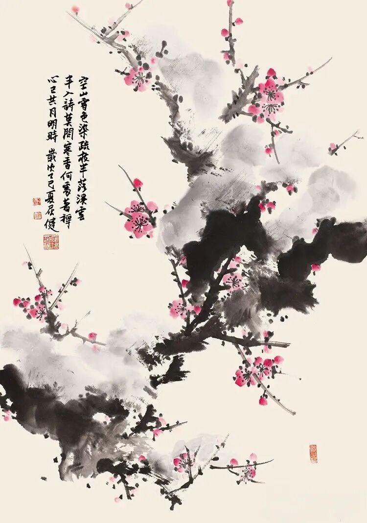 屈健先生以寫意花鳥與彩墨山水見長,其作品尤爲注重筆墨的寫意韻致與墨色的微妙變化,這使他筆下的藝術意象兼得文人趣味和水墨畫意,在寫意藝術現代拓展的文化路向中形成了鮮明的個人風格。作爲著名美術理論家和中國畫家,深入發掘梅蘭竹菊傳統花卉題材的寓興功能,自然風物也呈現出澄明與清透品質。