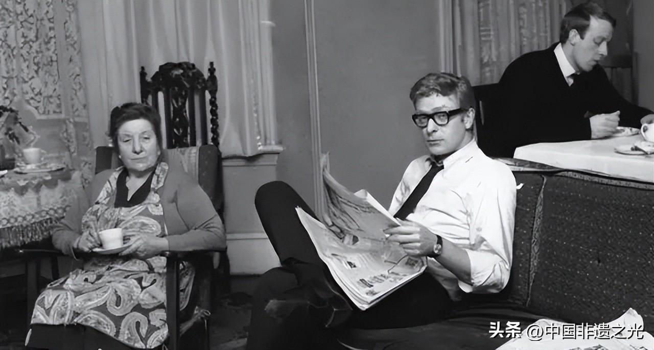英國演員邁克爾·凱恩和他的弟弟以及媽媽在家中
