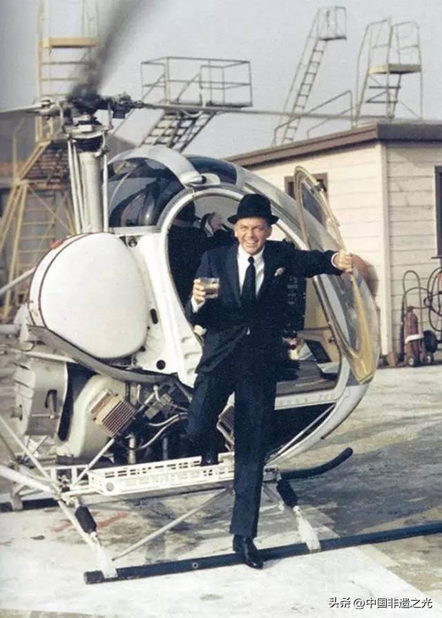 1964年,演員與歌手雙棲明星弗蘭克·辛納屈從直升機中走出來