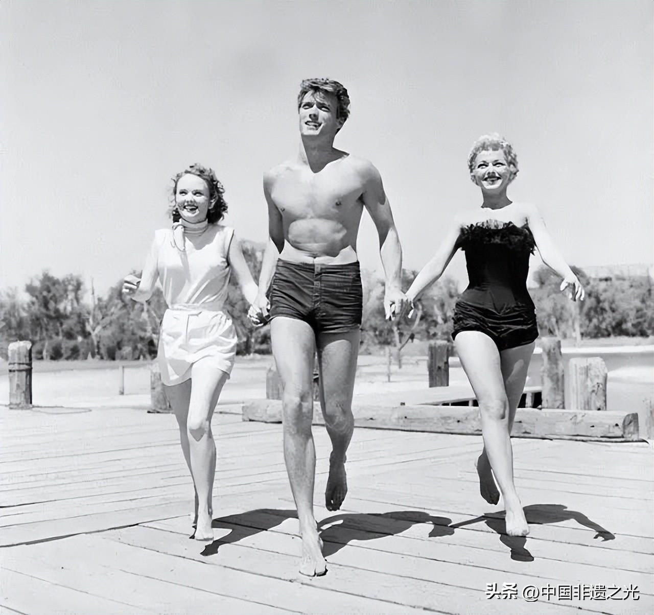 1954年,克林特·伊斯特伍德在舊金山牽着兩位女演員的手