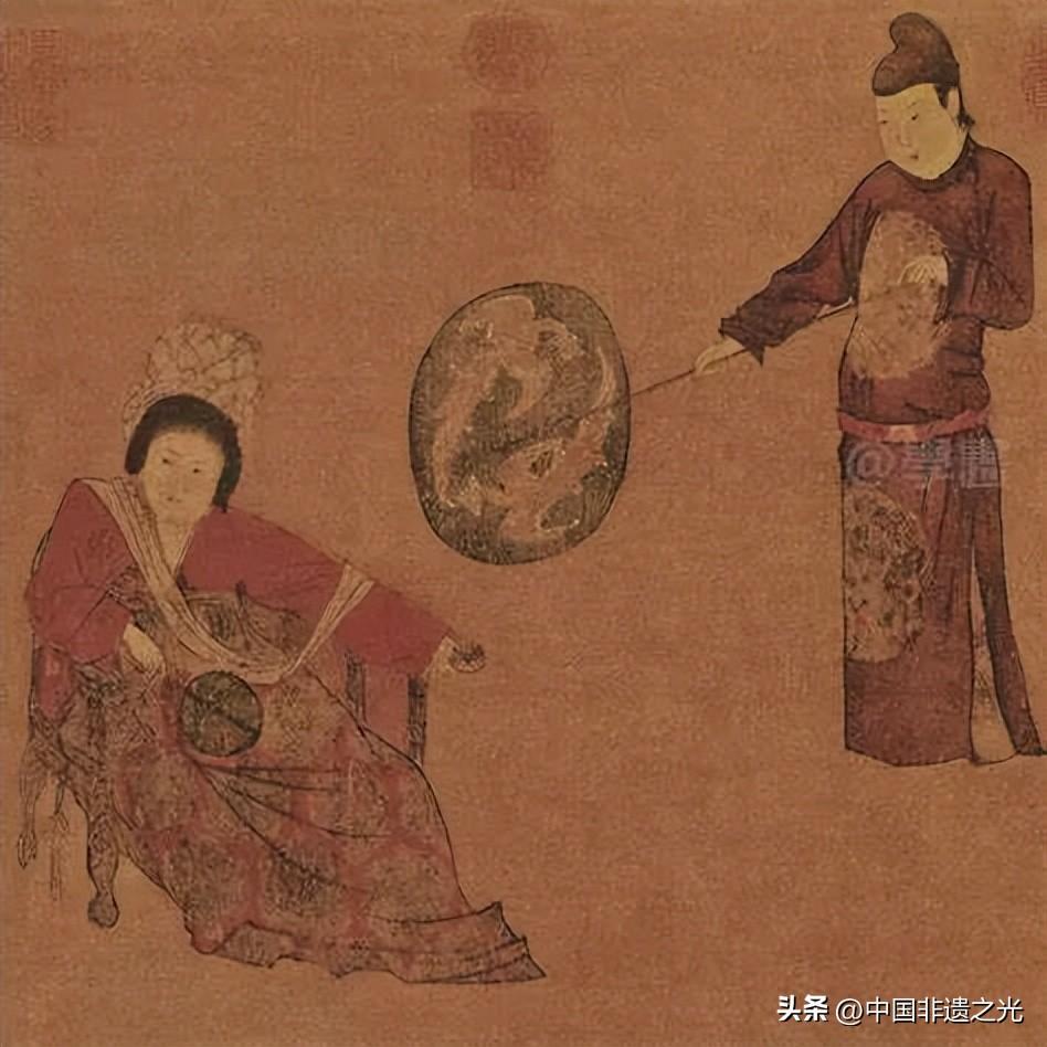 在唐代周昉的《揮扇仕女圖》中,一位侍者站立在一旁,手持長柄團扇,爲慵坐着的貴婦不停地扇風驅熱。