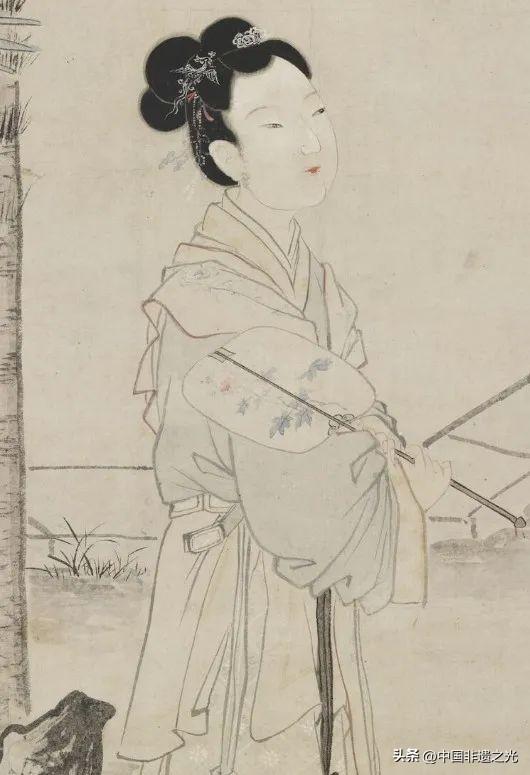 唐 周昉 《揮扇仕女圖》中的長柄扇故宮博物院藏