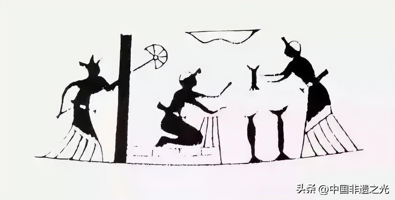 最早的扇子圖像,則出現在成都出土的“嵌錯宴樂攻戰紋銅壺”上,它屬於戰國前期的器物,上面刻畫有一人手執一件長柄大扇的圖像。