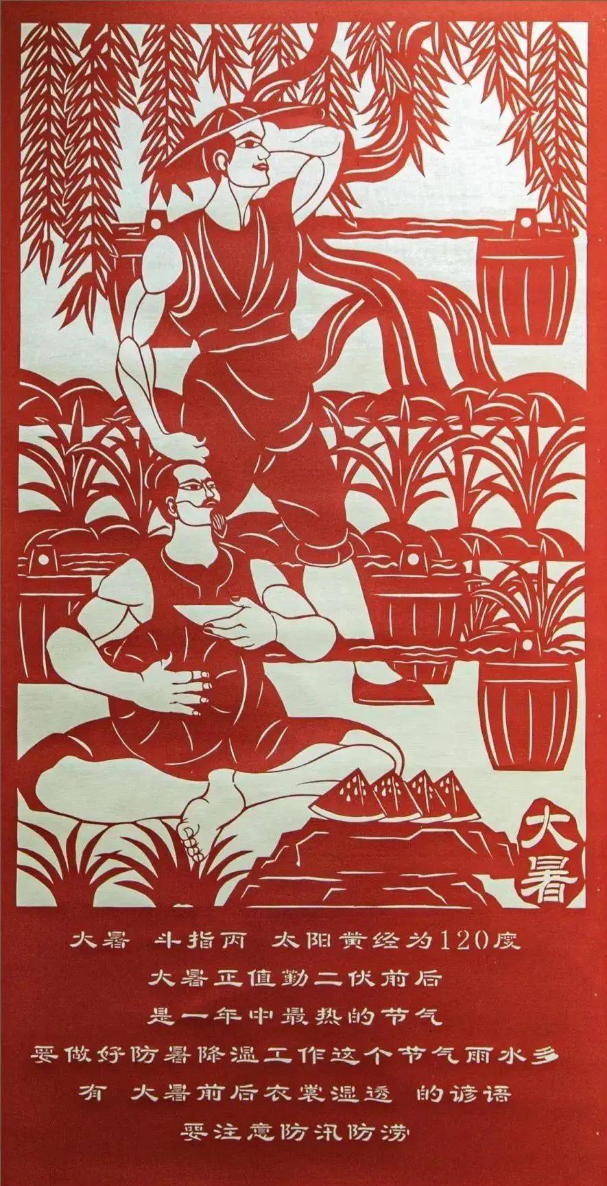 鄆城縣非遺傳承人楊秀玲及孫琪、張璐、張秀雲、韓麗華、劉先令等剪紙藝人,用傳統剪紙技法,創作了一組《二十四節氣》。作品圍繞二十四節氣的時令、氣候、物候以及人們的生產、生活、節俗展開,彰顯了中華人文精神、審美情趣。