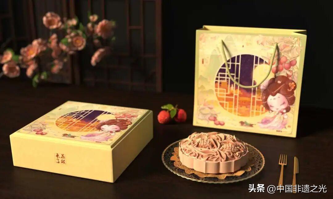 而另一款“花好月圓”荔枝月餅,月餅餅面靈感擷取自明代青玉透雕荔枝紋嵌件,層次分明的枝葉脈絡,飽滿豐盈的果實肌理,宛如貴妃耳畔珠翠輕搖,瑩潤似凝露,在方寸間凝固百年匠心之美。