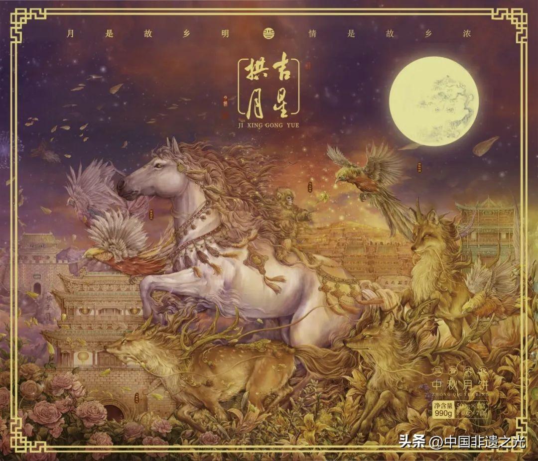 吉星拱月款月餅禮盒封面,把《山海經》中的瑞獸祥禽與三晉大地的獨特韻味巧妙融合。