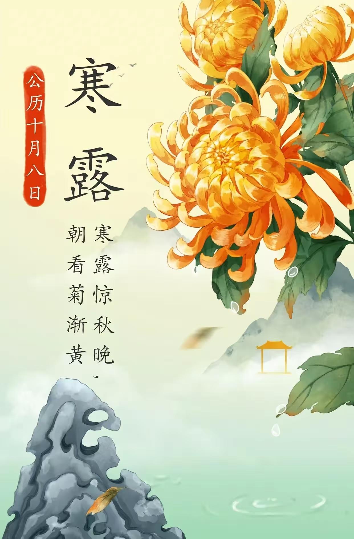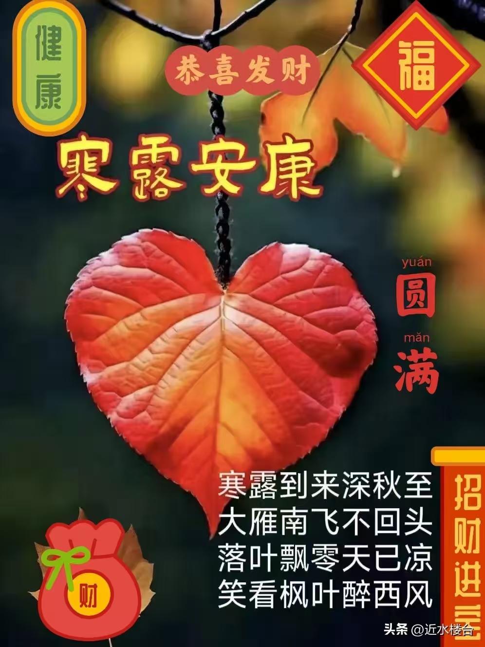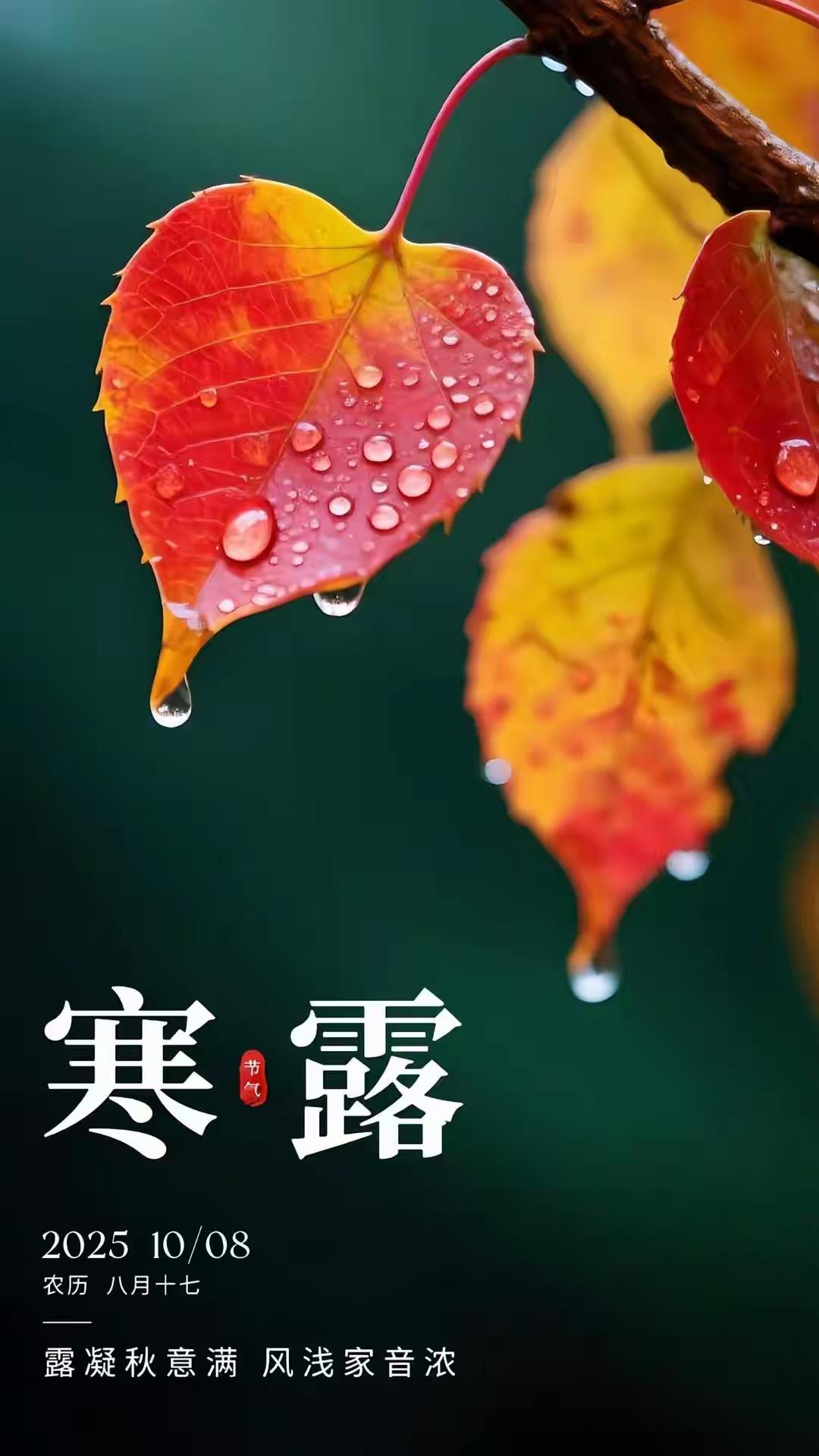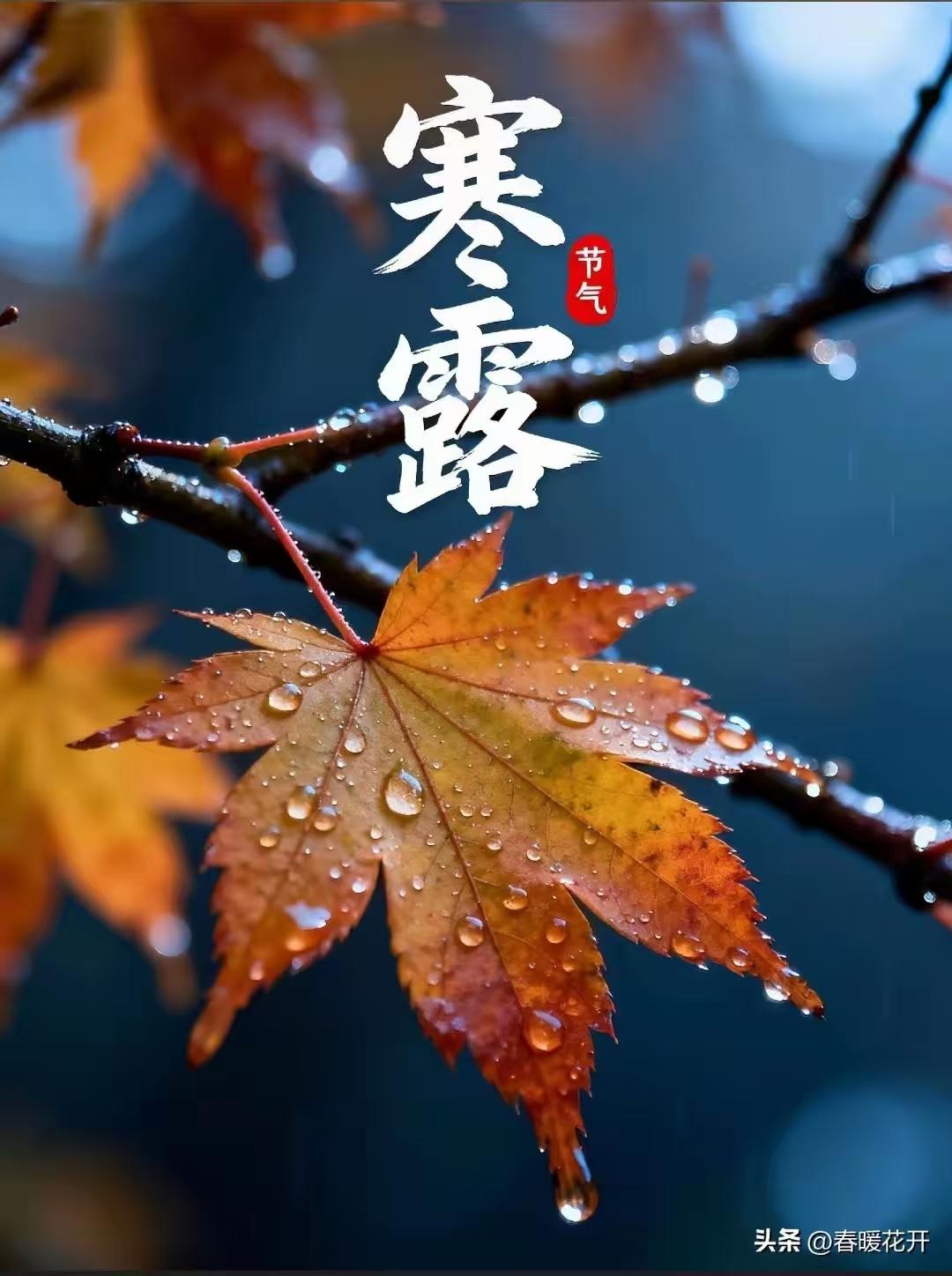 注:本詞以寒露節氣爲背景,通過玉露、秋葉、徵雁等意象勾勒出深秋畫卷。下闋融入陶淵明採菊、劉伶醉酒等典故,表達超脫塵世名利之志。末句“蓴羹入味”暗用張季鷹蓴鱸之思,抒寫順應自然、笑對時序更迭的豁達襟懷。
