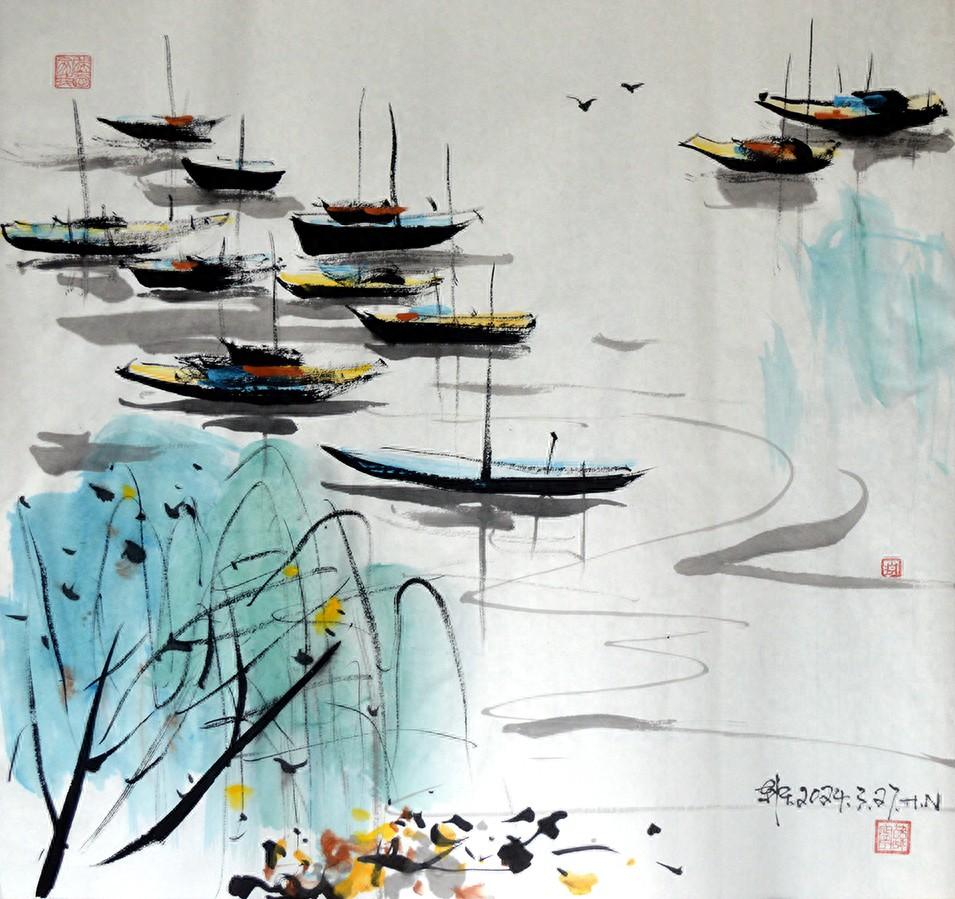 水墨水墨,我們有時候要把水墨當成一種多層次的顏色來表現而非僅僅是侷限於線條墨韻以及渲染效果表現。這樣有便於更好的發揮色彩的多樣性豐富的表達,從而達到最佳的視覺感官效果體現。我們有些認識往往是帶有很強的傳統意識以及侷限性,極爲狹隘僵硬刻板。藝術表現沒有規範性要求,竭盡所能發揮你的想象與創造力,表現出豐富多彩的多元化的藝術作品來,這就是藝術表現的大目標大目的。