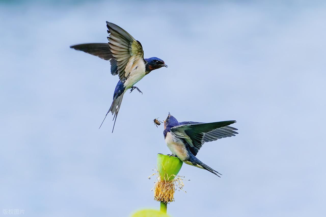 它們原是極戀舊的生靈,整個春夏都廝守着我屋檐下的那個泥巢。那巢做得真是精巧,用一口一口的溼泥,混着草莖,一點一點壘積起來,像個倒掛的小小葫蘆,口兒開在側面,既避風雨,又便進出。我常看它們夫唱婦隨地忙活,銜來蟲兒,喂那巢中張着黃口、啁啾待哺的雛兒;或是在晨光熹微中,並立在那電線上,用那剪子似的尾羽,梳理着藍黑有光的羽毛,一面說着那些啾啾噥噥的、我們聽不懂的體己話。它們與人是這樣親近,有時竟敢從我手邊一掠而過,那翅膀扇起的微風,軟軟地拂在臉上,教人心裏也軟軟的。