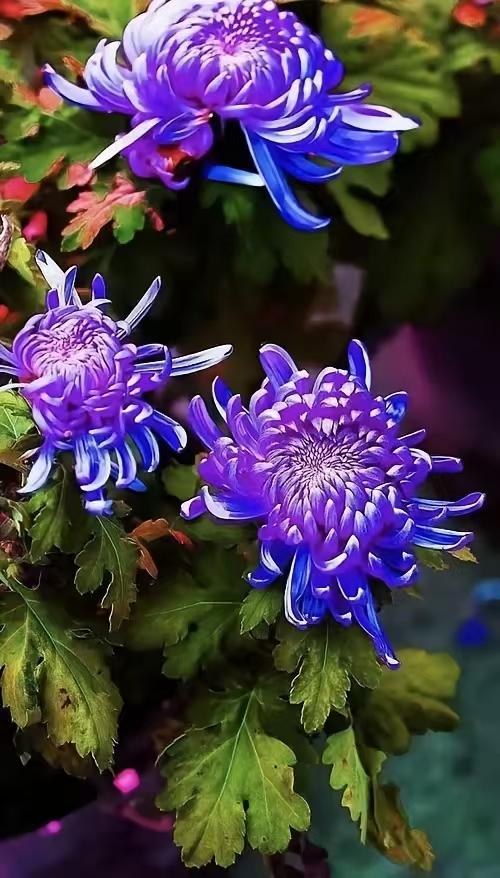 那是怎樣的顏色呢?靠邊的,是淺淺的月白,花瓣一絲絲舒捲着,像舊宣紙上暈開的雲,又像少女抿着脣的、含着心事的笑。風來時,它們便微微地顫,顫得人心尖兒也跟着軟了。中間的,卻忽然熱烈起來,是那種潑辣的、不加掩飾的明黃,一團一團,像是凝固了的陽光,又像是地底湧出的、最純粹的火焰,要把這蕭索的節氣燒出一個洞來。最惹眼的,是深處那幾簇絳紫的,顏色沉甸甸的,像是用夕暉釀了很久的酒,看一眼,便有些微醺的醉意了。