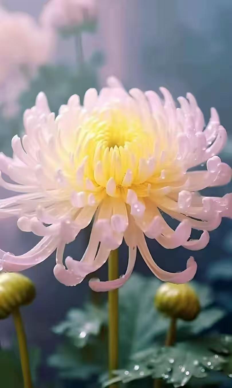 忽然便想起許多事來。想起屈原行吟澤畔,“朝飲木蘭之墜露兮,夕餐秋菊之落英”,他的顏色,想必也是這樣決絕的。想起李清照簾卷西風,“莫道不消魂,人比黃花瘦”,那瘦削的花瓣裏,盛着的是一個時代的哀愁。這花,原來不只是花;它每一片的輪廓,都像極了那些孤高靈魂的剪影。