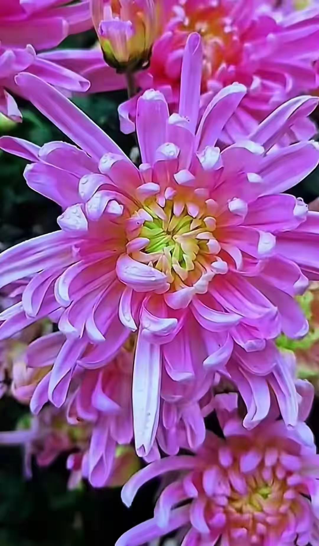 我俯下身,湊得很近。那花瓣是涼的,帶着露水的、金屬似的涼意;可那姿態,卻是滾燙的——每一片都捲曲着,伸展着,掙扎着,繃緊了生命全部的力量。它們不像春花,開得那樣理所當然,那樣慵懶。它們是咬着牙,在風裏、霜裏,硬生生地,把美,從冷峻的現實裏逼了出來。這是一種抗爭的、不服輸的美,帶着悲劇性的莊嚴。
