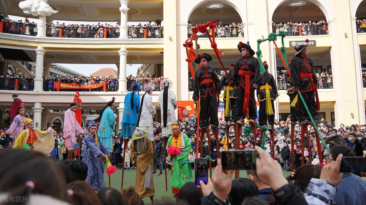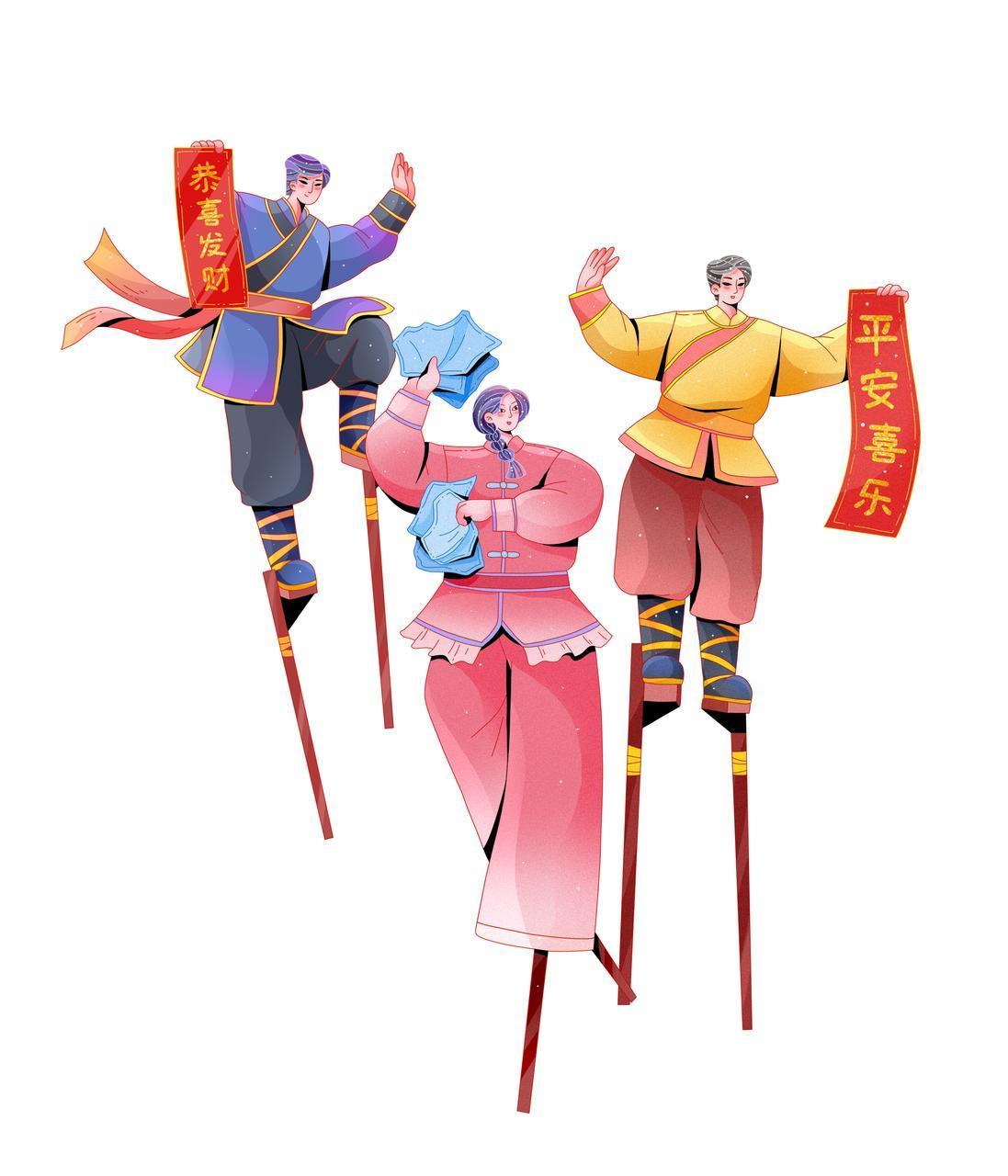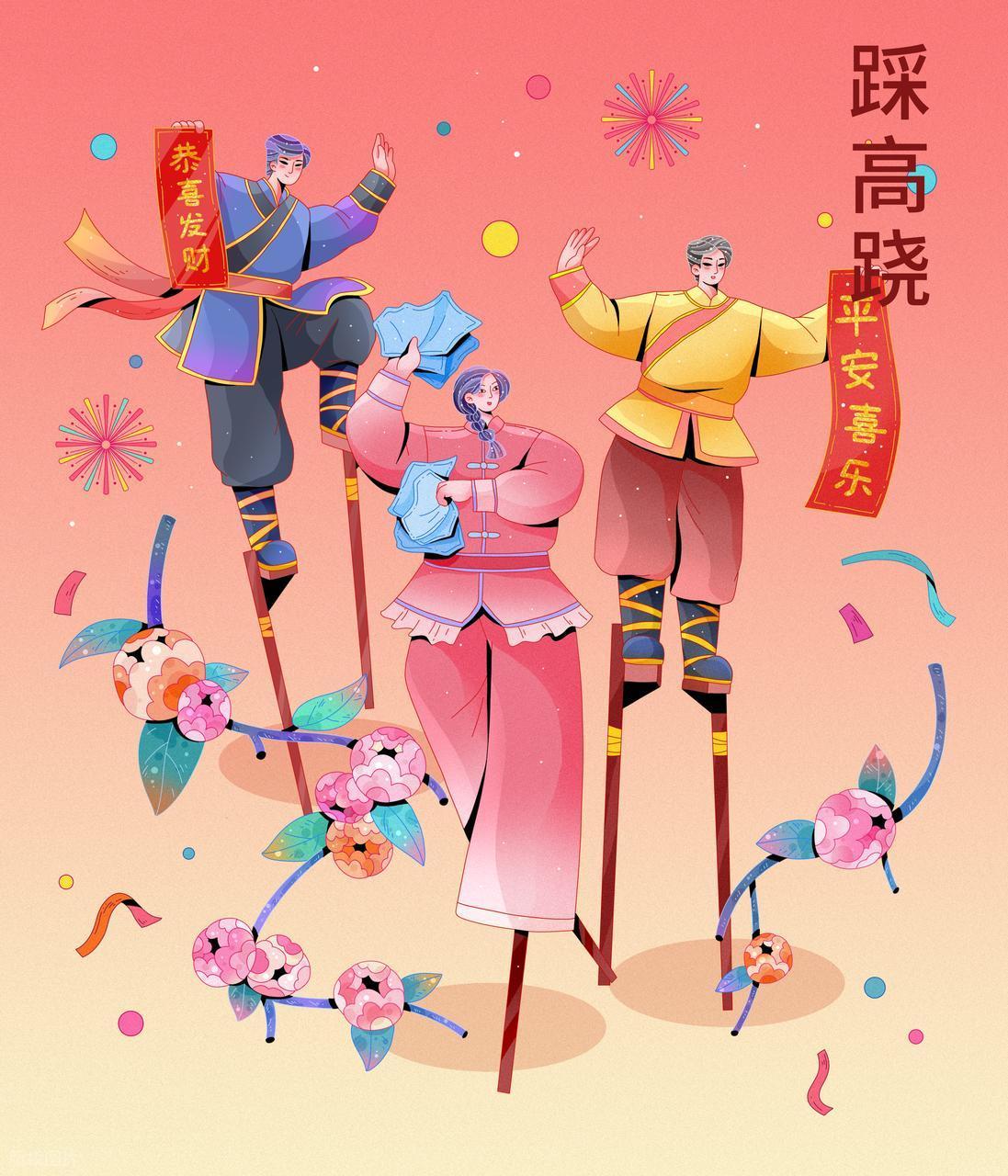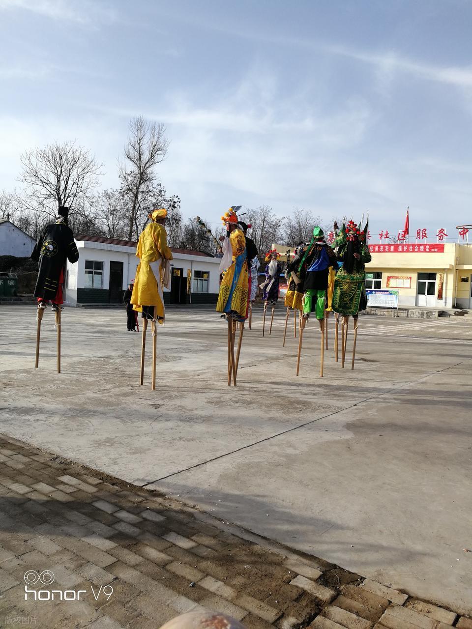 每到過年春節,故鄉青龍民間民俗傳統--踩高蹺非常熱鬧,鑼鼓嗩吶震耳欲聾。這聲音,初時是極遠的,混在料峭的東風裏,有些飄忽,像隔着一條河聽對岸的人語。但你只要側耳一聽,心便陡然提了起來——是它,就是它!那“篤、篤、篤”的聲響,一下一下,沉實而空靈,不是踏在結實的土地上,倒像是從半空中,一下下敲在人心最癢處的那面鼓上。於是,滿院子亂竄的孩子們先靜了下來,狗也不叫了,連檐下冰凌的滴水聲也彷彿屏住了。整個世界,都在等着那聲音由遠及近。