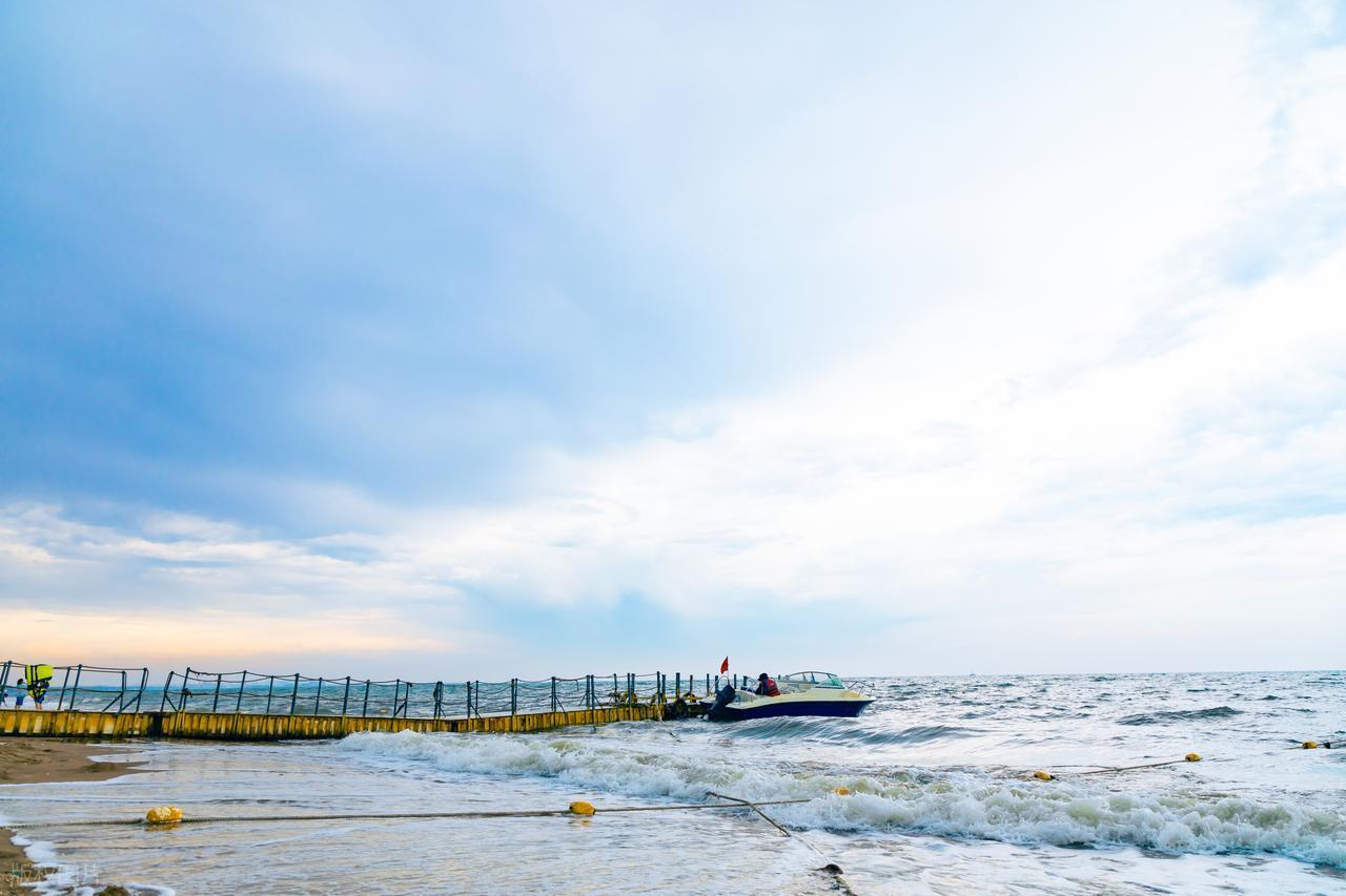秦皇島南戴河位於渤海。這渤海,是醒着的,卻又像在夢裏。天還是那種蟹殼青,混混沌沌的,分不清是曙色未開,還是夜氣未散。遠遠的,只有一條線,是白的,卻又隱隱地透着些灰藍,懶懶地橫在那裏,一動也不動。風是有一陣沒一陣的,拂在臉上,不清爽,倒帶着些腥鹹的黏意,像是海在夢中的囈語,溼漉漉的。我獨自走着,腳下的沙是軟的,一步下去,便是一個淺淺的窩,悄無聲息地,便將我的來路吞沒了。這靜,便愈發地濃了。