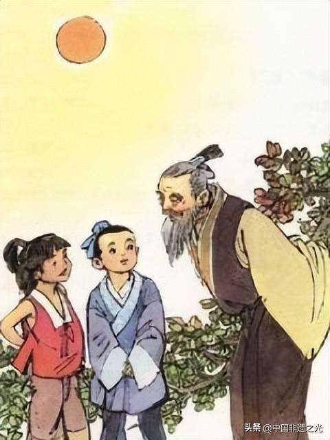 【大意】孔子到東方遊歷,看見路旁有兩個小孩在爭辯,孔子問他們爭論的原因,一個小孩說:“我認爲太陽剛出來的時候離人最近,到了中午離人最遠。”另一個小孩認爲太陽早上離人最遠,中午離人最近。”前一個小孩說:“太陽剛出升的時候有車蓋那樣大,到了中午,卻只有盤子那樣大,這不是遠的看起來小近的看起來大嗎?”後一個小孩說:“太陽剛升起時,天氣還是涼絲絲的,中午就熱得像手伸到熱水裏,這不是近熱遠涼的道理嗎?”孔子無法判斷誰是誰非。兩個小孩笑着說:“誰說你知識淵博呢?”
