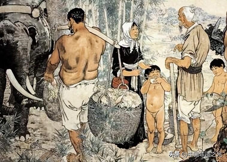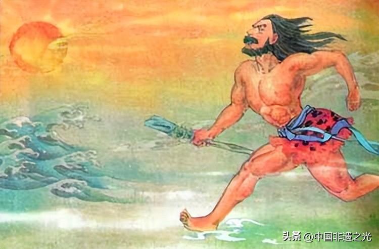 【大意】夸父不自量力,想要追上太陽的影子,一直趕到太陽落下的隅谷旁邊,他口渴極了,想得到水喝,就跑去飲黃河、渭河的水。黃河、渭河的水不夠喝,他又跑到北方去喝大湖裏的水。還沒有走到,半路上他就渴死了。他丟棄掉的手杖,爲屍體的脂膏和肌肉所浸潤,生長成一片茂密的樹林,名叫鄧林。鄧林覆蓋面積方圓達幾千裏。