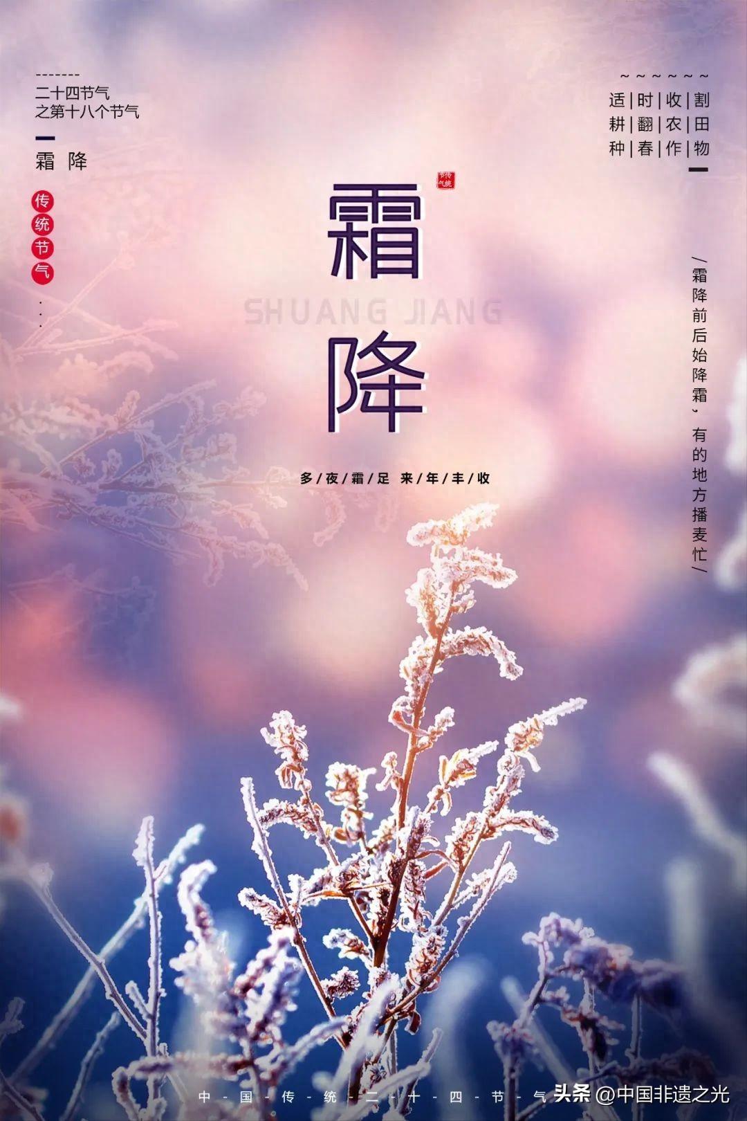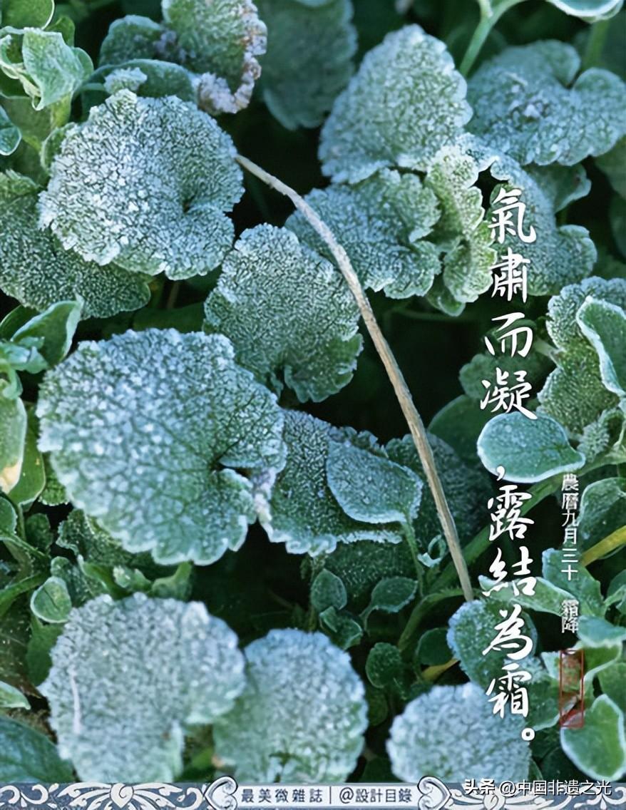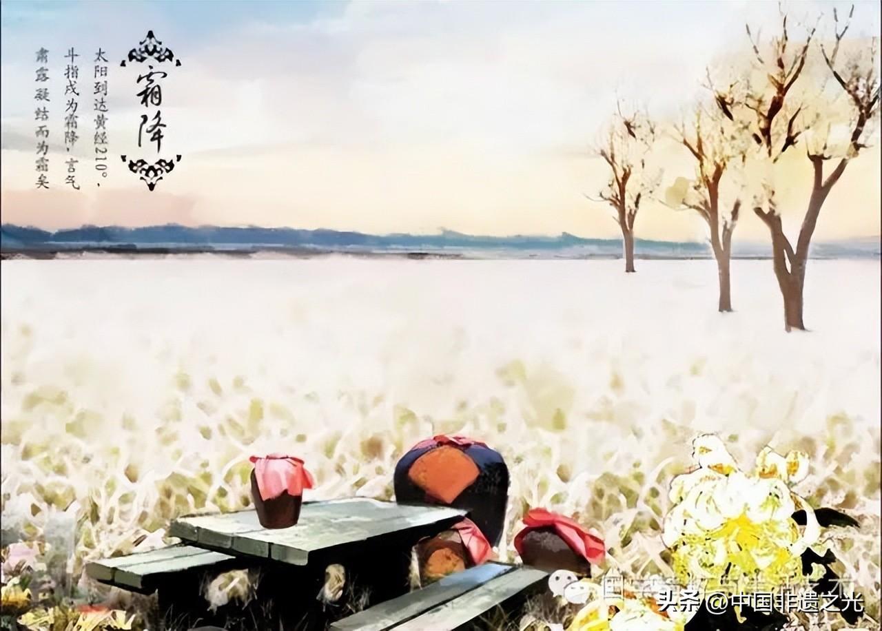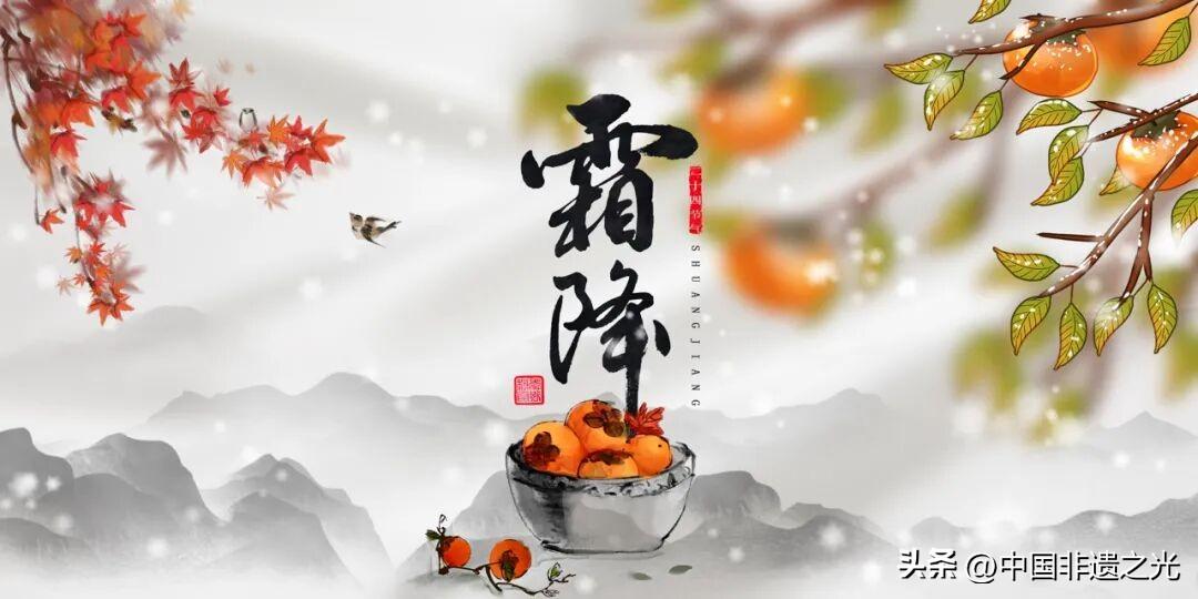 霜降 | 氣肅而凝,露結為霜。枯木掛柿,飛鳥來啄。榴熟子落,有鼠為倉。稻梗凝白,寒窗冷霜。萬戶曬柿,甘蔗刮霜。野慄坼裂,鴻雁啼慌。百花茶茗,新月歲歌,萬物冬藏。