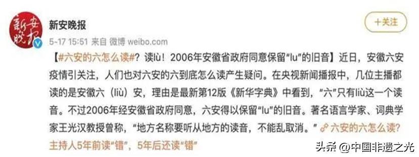 對於安徽省省外的大多數人來說,聽到這個讀音想必會有些意外。其實,中國幾乎每個省份都有一些比較特殊的地名。像上面我們說的六安,字是常用字,卻有着自己的地名專用讀音,類似的還有浙江台州(tāizhōu)、河北蔚縣(yùxiàn)、江西鉛山(yánshān)。當然了,還有些地名僅僅看到字形就讓我們望而卻步,比如江蘇邗江(hánjiāng)、郴州(chēnzhōu)、四川邛崍(qiónglái)。
