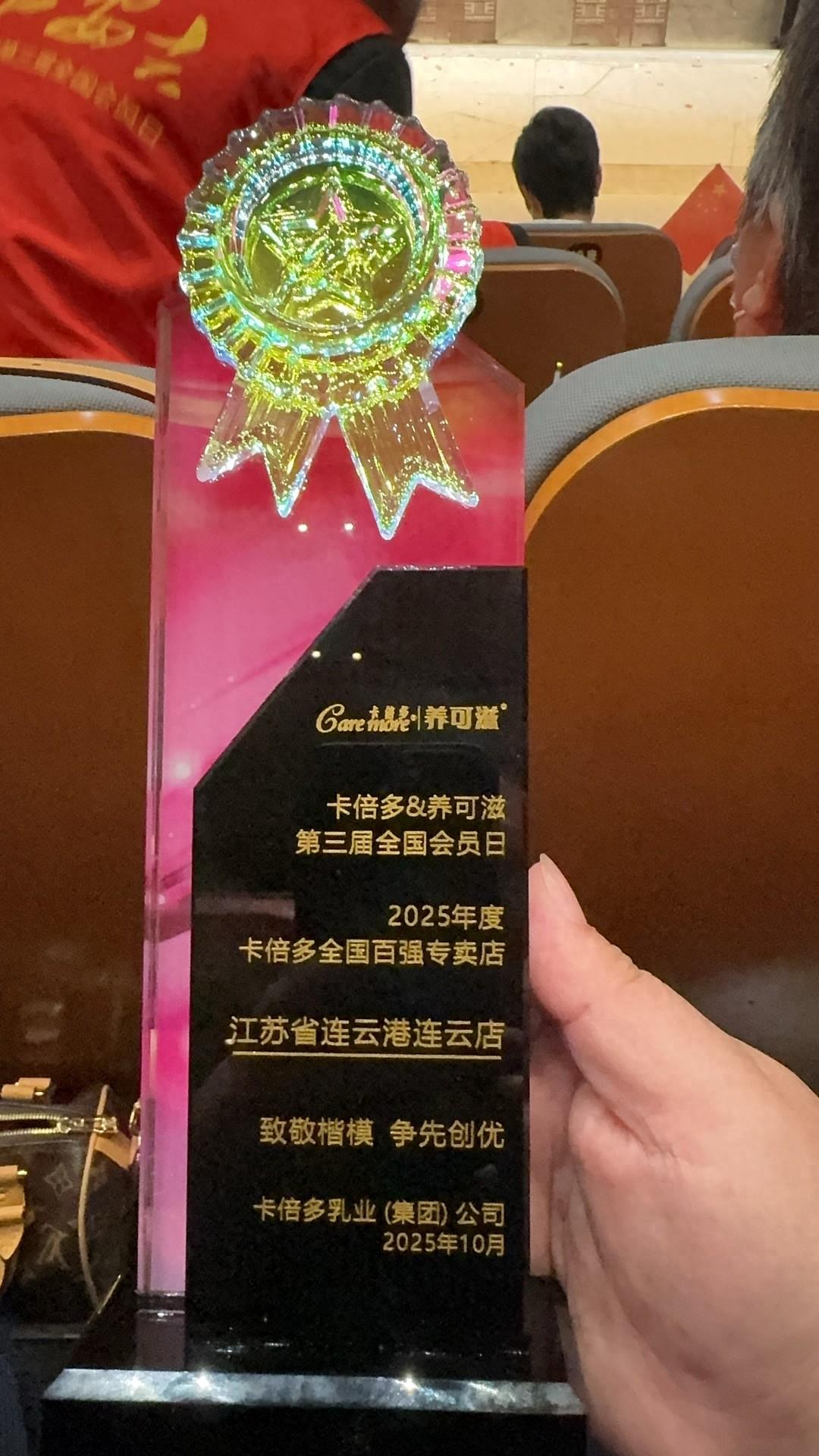 堅守革命聖地,再傳佳音。日前,在陝西延安隆重舉行的卡倍多第三屆全國會員日盛典上,來自江蘇連雲港市的卡倍多羊奶店經理趙麗,憑藉卓越的經營管理與出色的市場服務,從全國衆多優秀門店中脫穎而出,成功入選“2025年度卡倍多全國百強店”,並獲頒象徵至高榮譽的獎盃。這一殊榮,不僅是對趙麗經理個人能力的極高肯定,更是蘇北地區健康服務行業銳意進取、高質量發展的一個生動縮影。