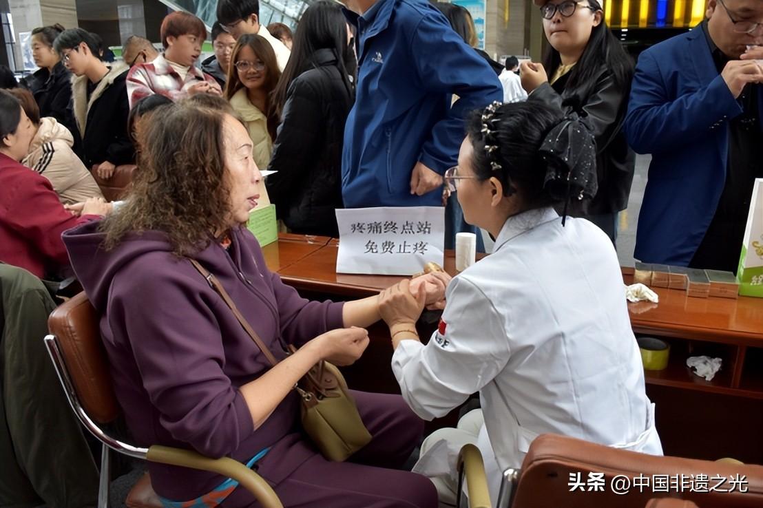 展區內人潮湧動,熱鬧非凡。傳承人們現場講解技法、展示療法原理,許多觀衆親身參與體驗,切實感受到傳統技藝的獨特魅力與實用價值。來自山西老區職業技術學院的志願者團隊爲大會提供引導與服務,充分展示了新時代青年傳承非遺文化的青春風采。