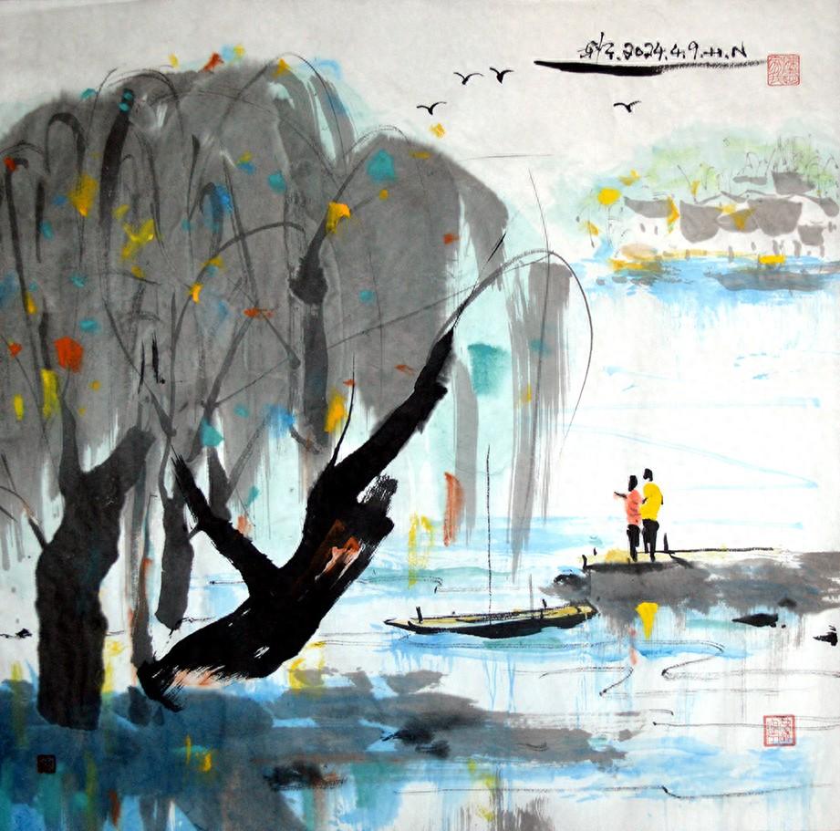 一種自我的對白,一種內卷的畫面,自己對自己有述說不完的話語,一切在靈動的意境中領悟神會彼此彼此。彷彿會心一笑,釋懷了心願表達了理想與訴求,呈現出嚮往的世界。繪畫藝術有所表達有所展示,意境的意識的,有着賞心悅目的感官體驗而達到滿足。藝術天真無邪的直入心靈孜孜不倦的滋潤着提升薰陶着,使得我們無形的神態有着不一般的氣質而超凡脫俗。