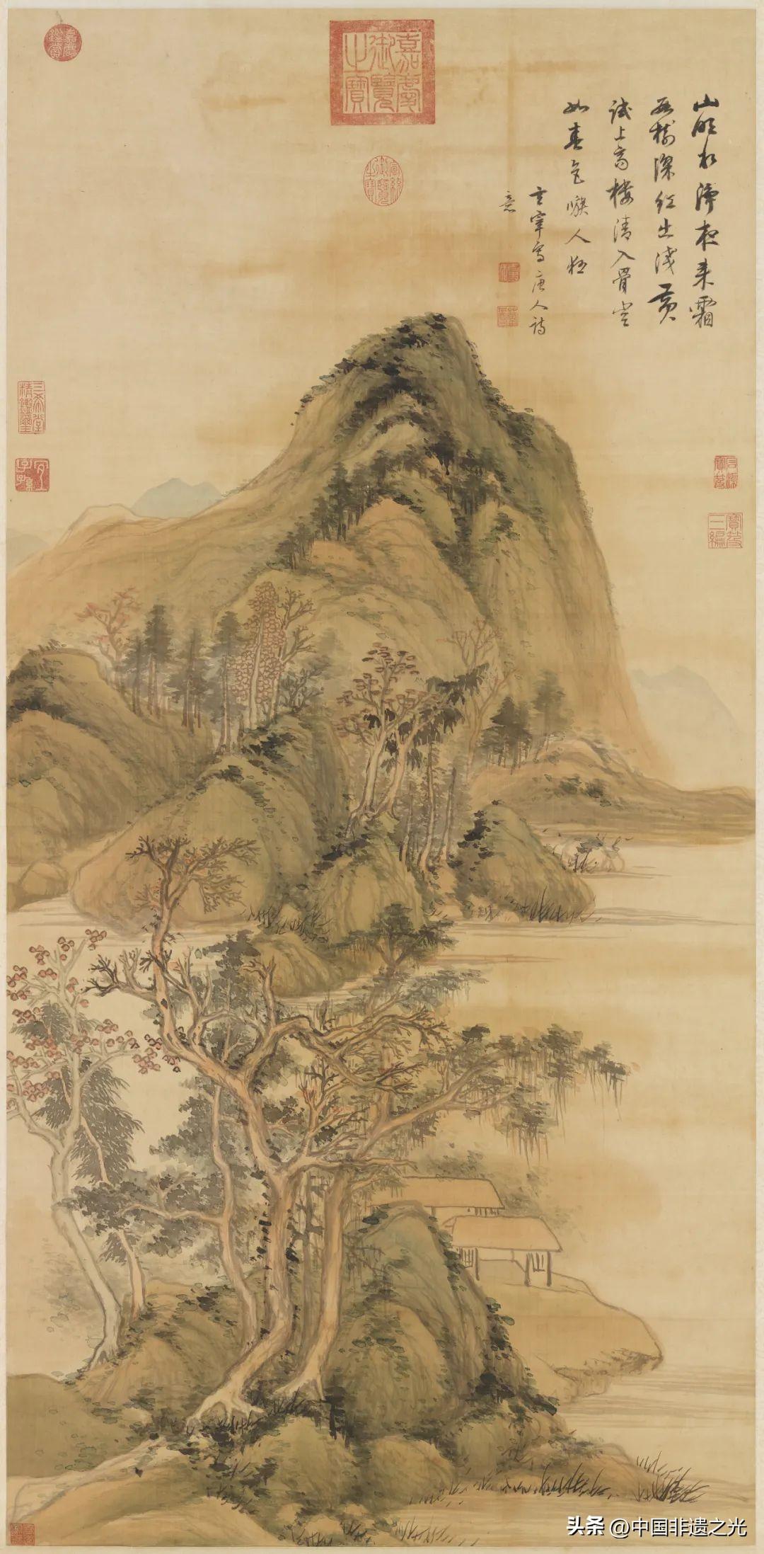 山明水淨夜來霜。數樹深紅出淺黃。試上高樓清入骨。豈如春色嗾人狂。玄宰寫唐人詩意。
