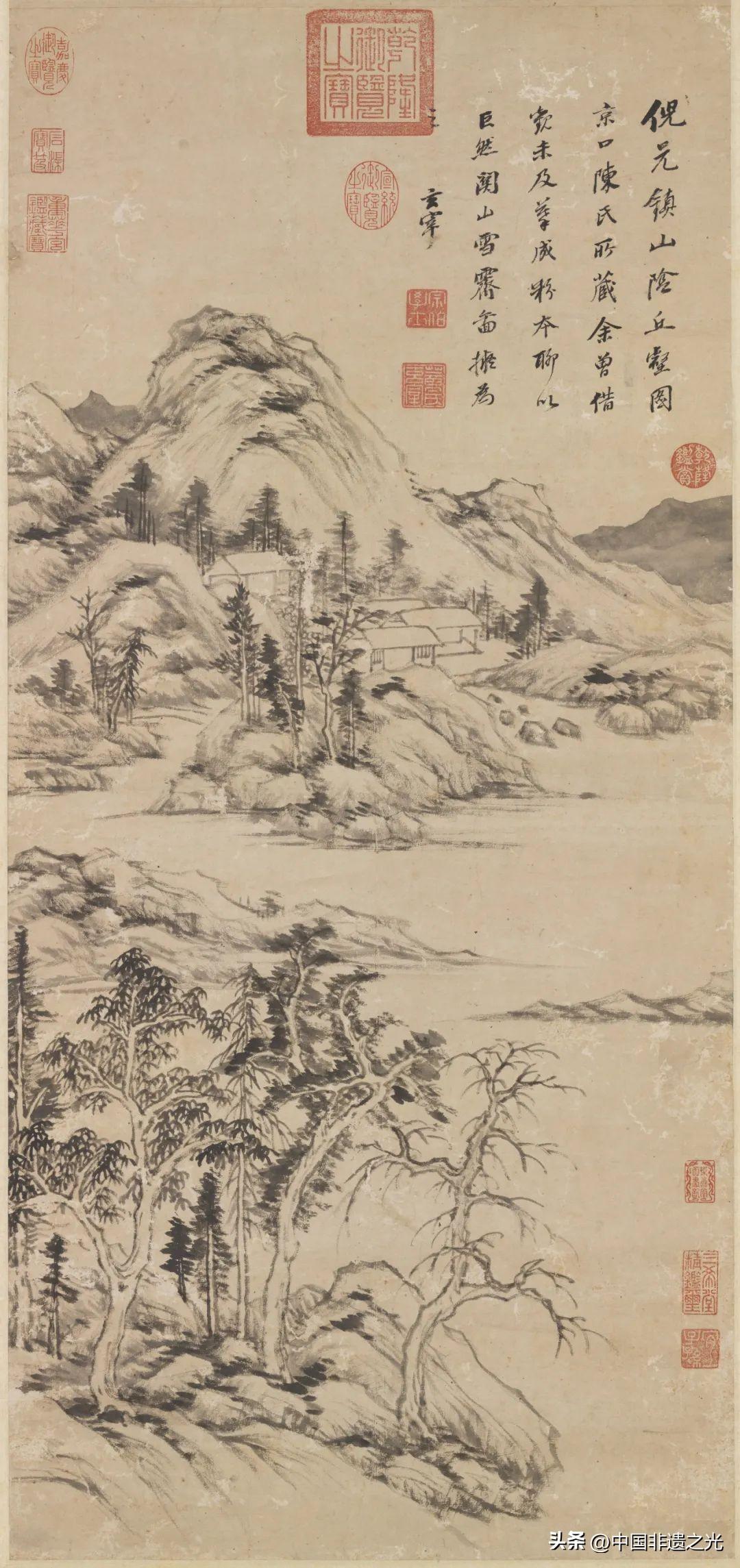 倪元鎮山陰丘壑圖。京口陳氏所藏。餘曾借觀。未及摹成粉本。聊以巨然關山雪霽圖擬爲之。玄宰。