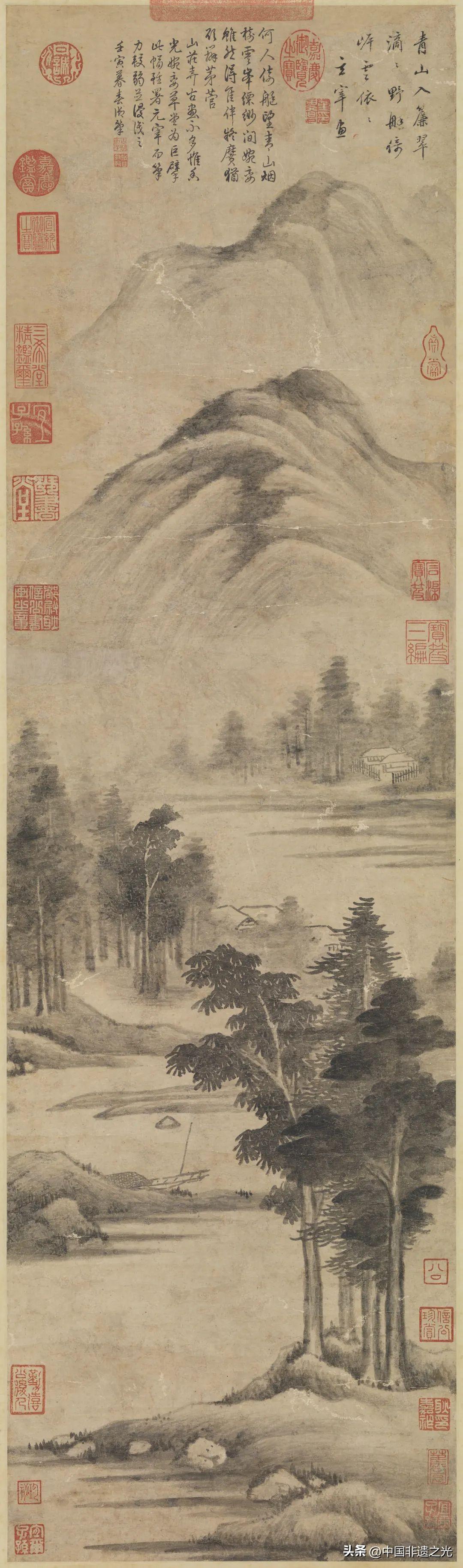 青山入簾翠滴滴。野艇倚岸雲依依。玄宰畫。