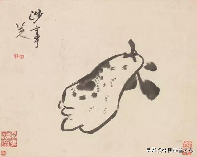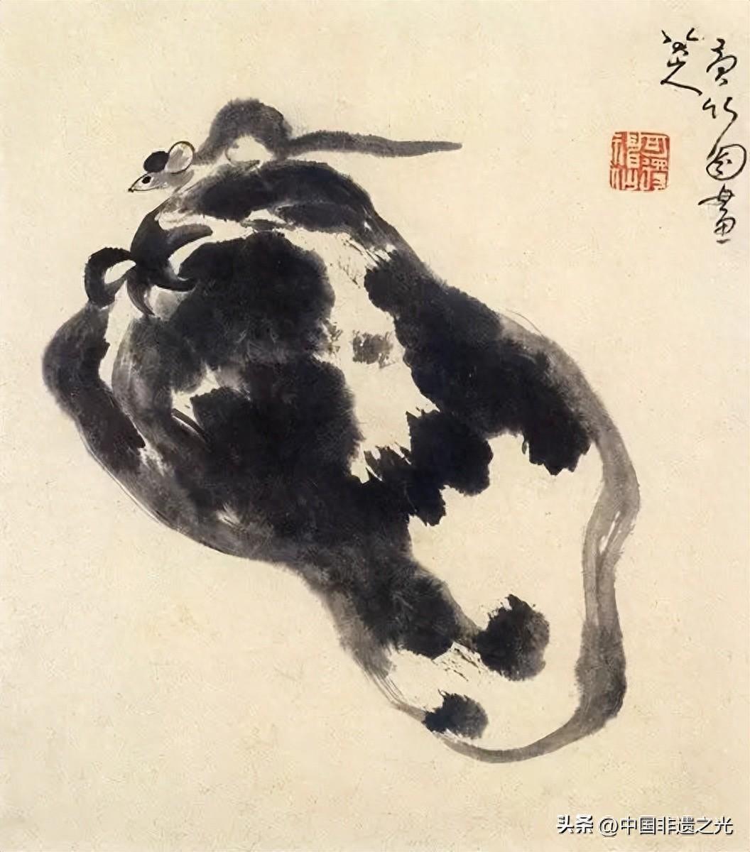 他的這種表現方式,尤其在魚、鳥,眼睛很大,有時甚至是方的,黑而圓的眼珠,頂在眼圈的上角,雖然魚和鳥的眼睛,不可能有這樣的情態,但相反地由於這種突出的誇張的描繪,卻增強了它的靈動性和特性。至於聳起了肩,或鼓起了肚子,展開了翅膀,或縮起了頭頸的那些鳥的情態,通過一團團化開的水墨,也突出了它所要表達的部分。