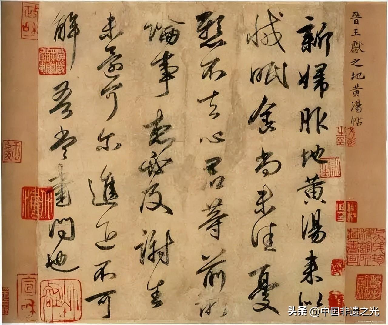 王獻之真跡未能傳承至今,作爲模本墨跡有數種傳世,其中之一即此《地黃湯帖》,全篇書風柔韌兼備,沉着軒昂,一氣呵成。