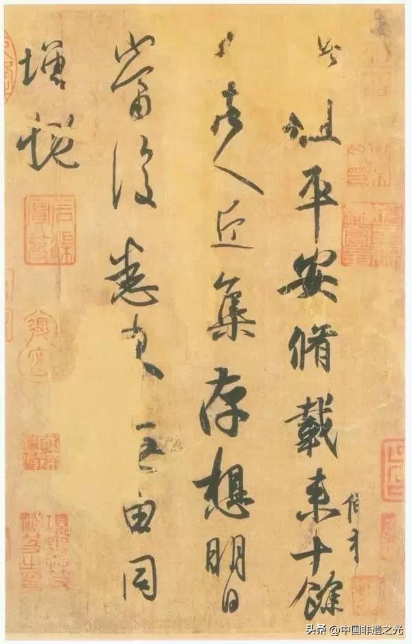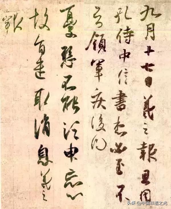 此帖爲王獻之給友人的便札,是他行草的代表作。起首是尋常應答,故運筆稍緩,似行書。後半部分筆底漸活,運筆漸快,行筆流暢靈動,更接近草書,欲與朋友晤談的迫切心情,躍然紙上。
